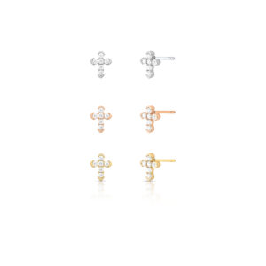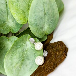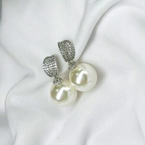 Brinco Banhado à Ródio Cravejado com Micro Zircônia Branca e Pérola Ponte