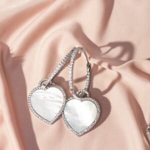 Brinco Coração Madre Pérola Banhado à Ródio Branco Cravejado de Zircônia Branca