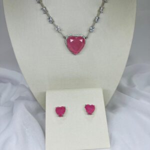 Brinco Banhado à Ródio com Pingente Coração Rosa