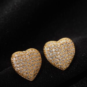 Brinco Coração Médio Banhado à Ouro 18k Cravejado com zircônia Abaulado