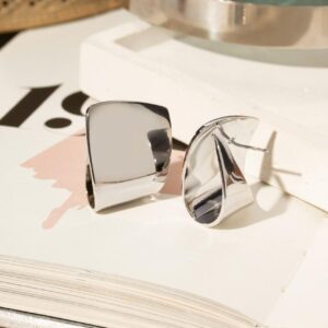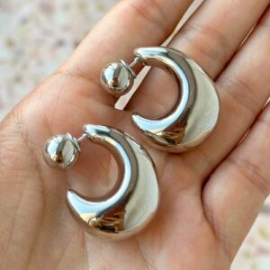 Brinco Banhado à Ródio Vírgula Lisa com Tarraxa Esfera