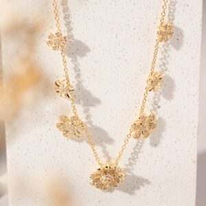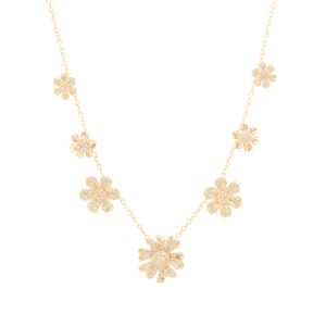 Colar 7 Flores Banhado à Ouro 18k Cravejado com Zircônia Branca