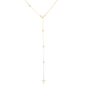 Colar Gravatinha Banhado à Ouro 18K com Pedras Redondinhas de Zircônia Branca e Cruz Cravejada