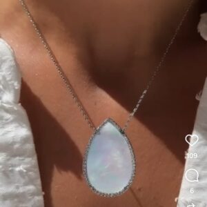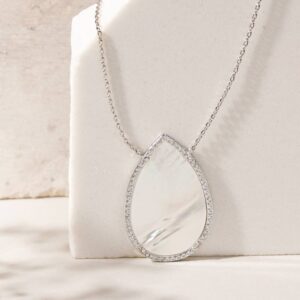 Colar Gota Madre Pérola Grande Banhado à Ródio Branco Cravejado com Zircônia Branca