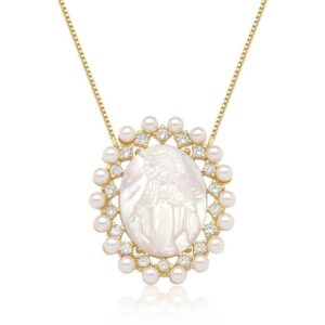 Colar Madre Pérola Religioso Banhado à Ouro 18k