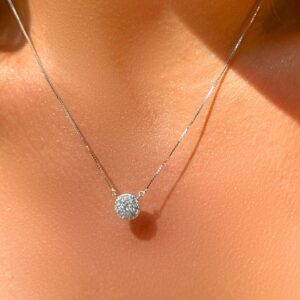 Colar Laços de Família banhada a Ródio Branco Cravejado com Zircônia Branca Delicado