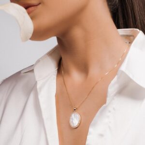 Colar Madre Pérola Oval Banhada à Ouro 18k Sofisticado