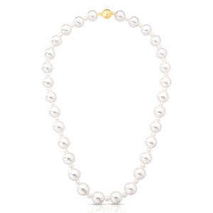 Colar Inteiro Pérola Shell Redondo Intercalado com Fecho em Ouro 18k