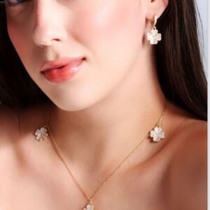 Colar Trevo Banhado à Ródio Cravejado com Zircônia Branca Luxuoso