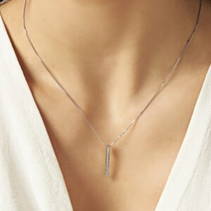 Corrente Banhado à Ródio Pingente Pendulo Cravejado Zircônia Branca