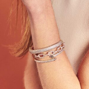 Bracelete Banhado à Ouro 18K em Elos Contornos Cravejados