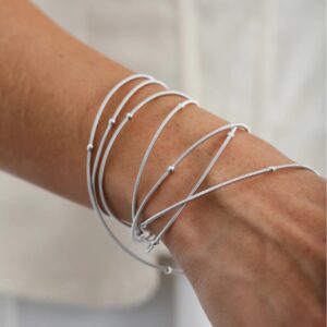 Pulseira Corda de Violão Várias Voltas com Bolinhas em Ródio Branco
