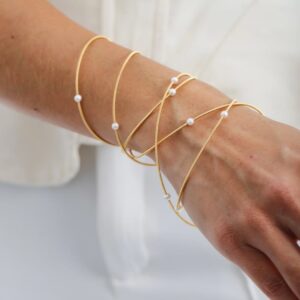 Pulseira Corda de Violão Dourada Várias Voltas com Pérolas