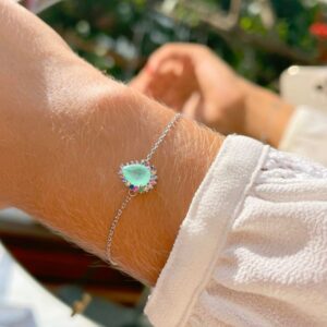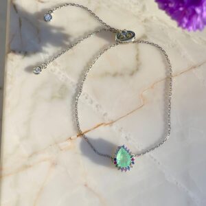 Pulseira Banhado em Ródio Fusion Esmeralda Colombiana Gota Zircônia Colorida