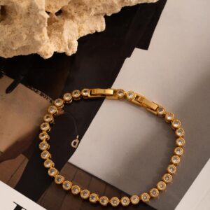Pulseira Banhado à Ouro 18K com Cristais Redondos