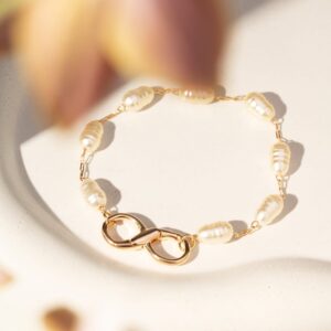 Pulseira Banhado à Ouro 18K Pérola Coreana Fecho Infinito