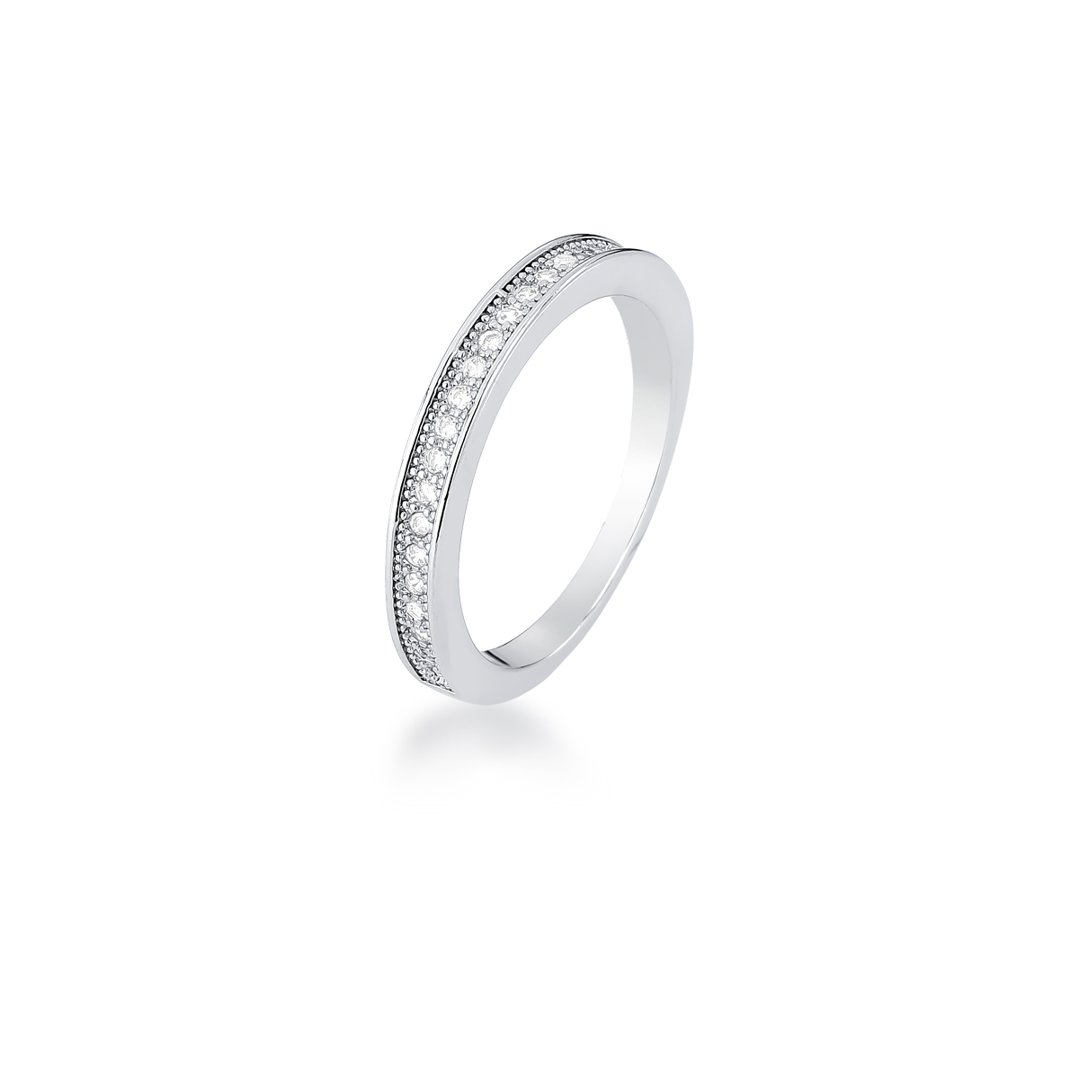 ANEL APARADOR ZIRCONIA FRENTE 1 LINHA 3MM BAN. A RODIO /INCOLOR /TAM. 18