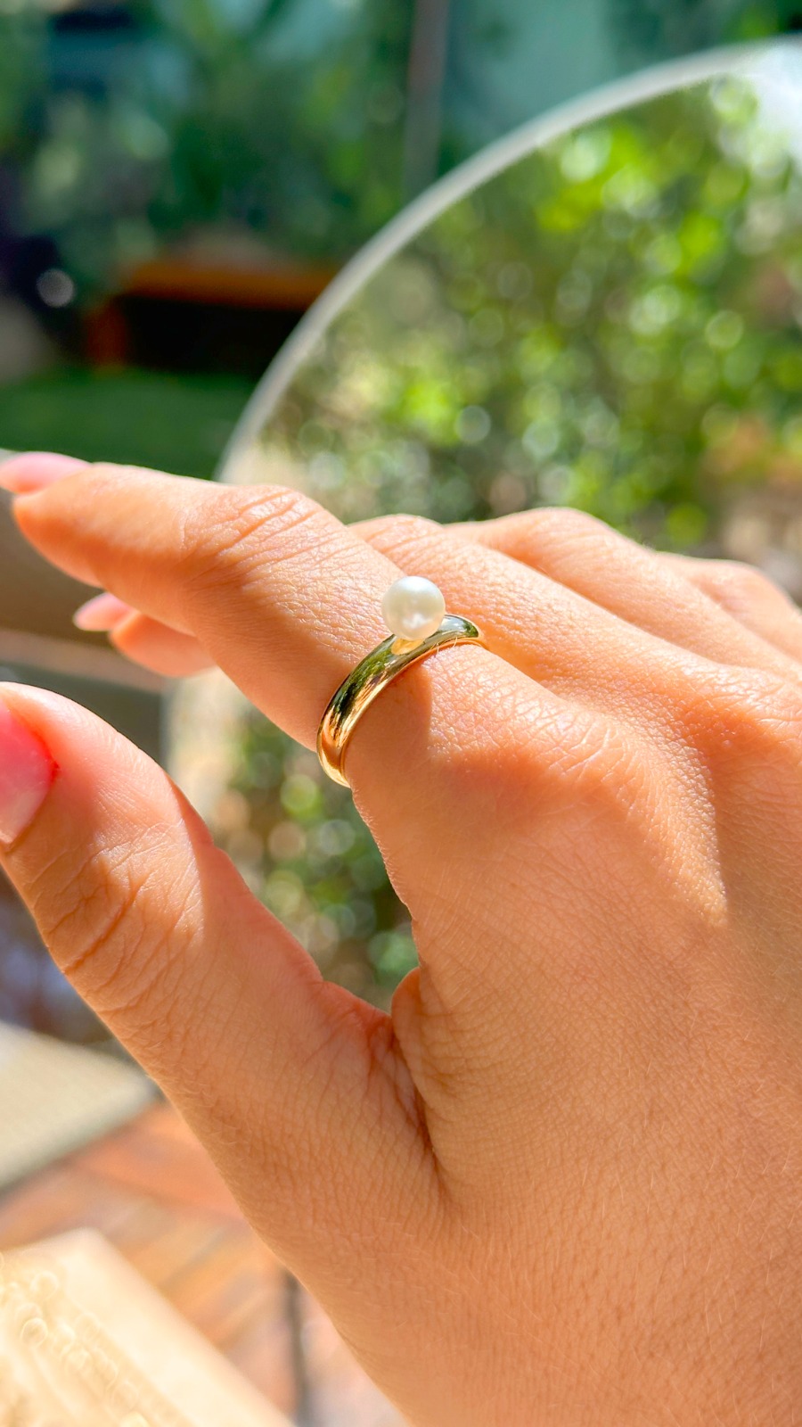 Anel Banhado à Ouro 18K Pérola Esfera 6mm