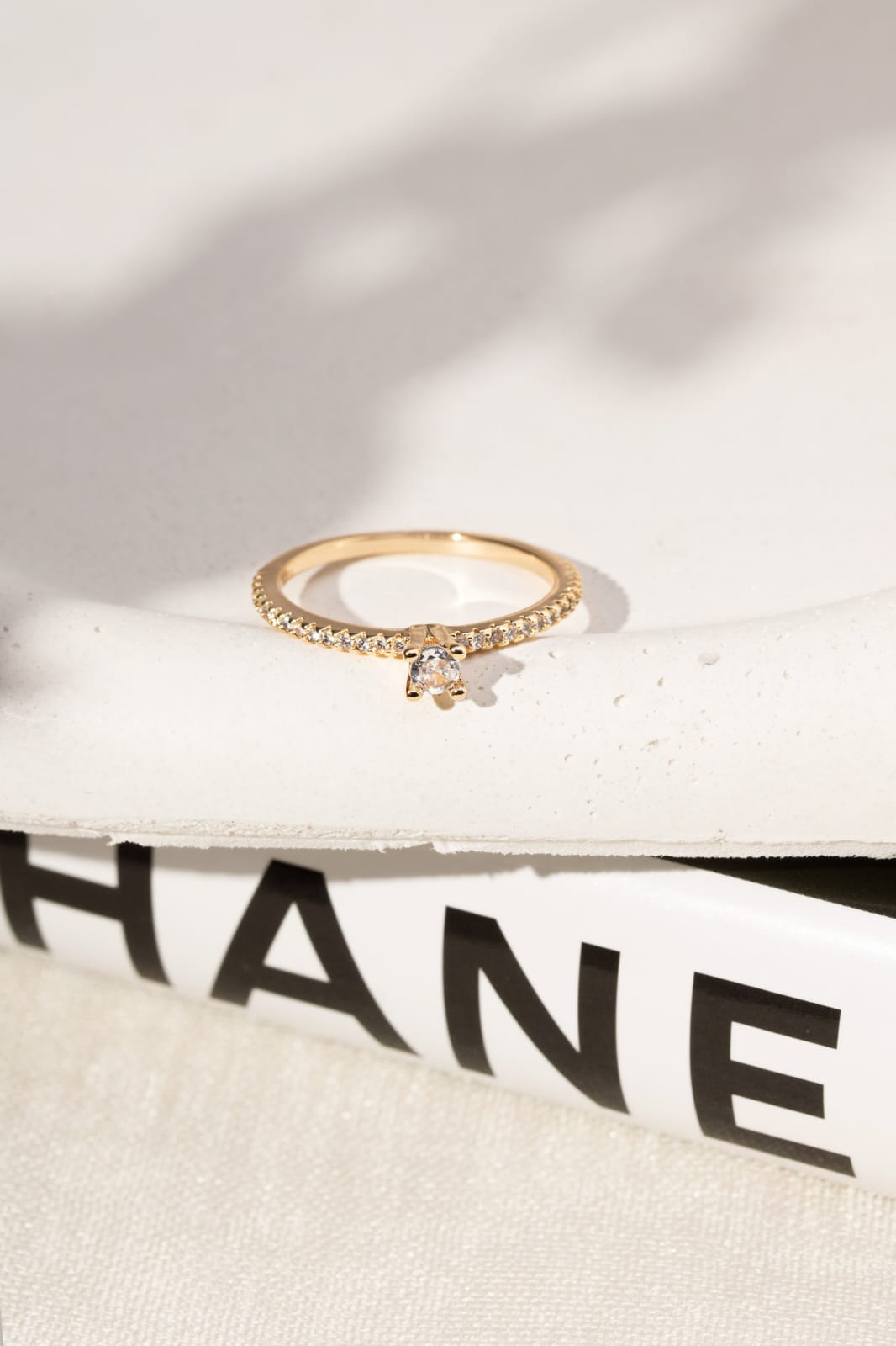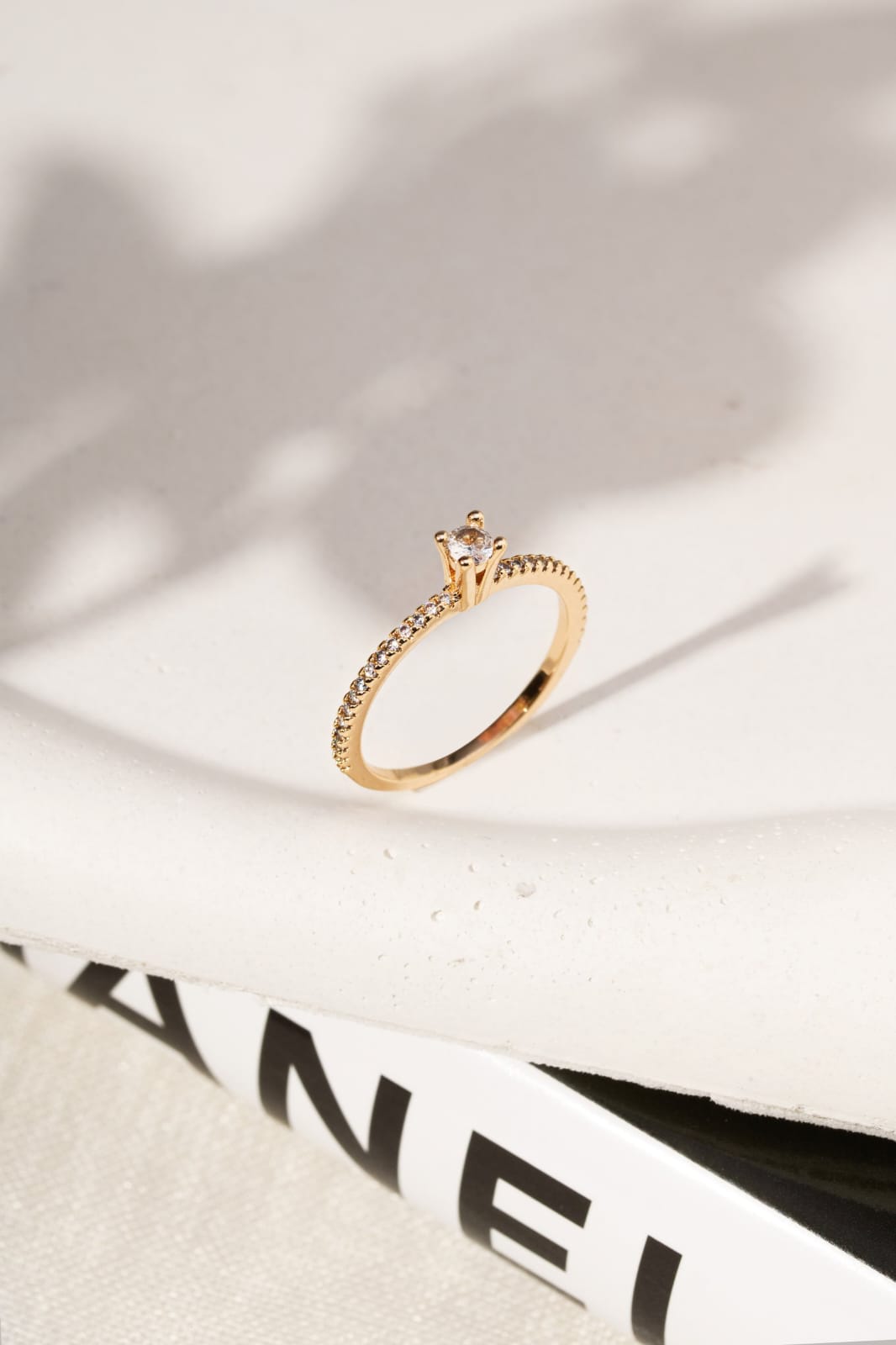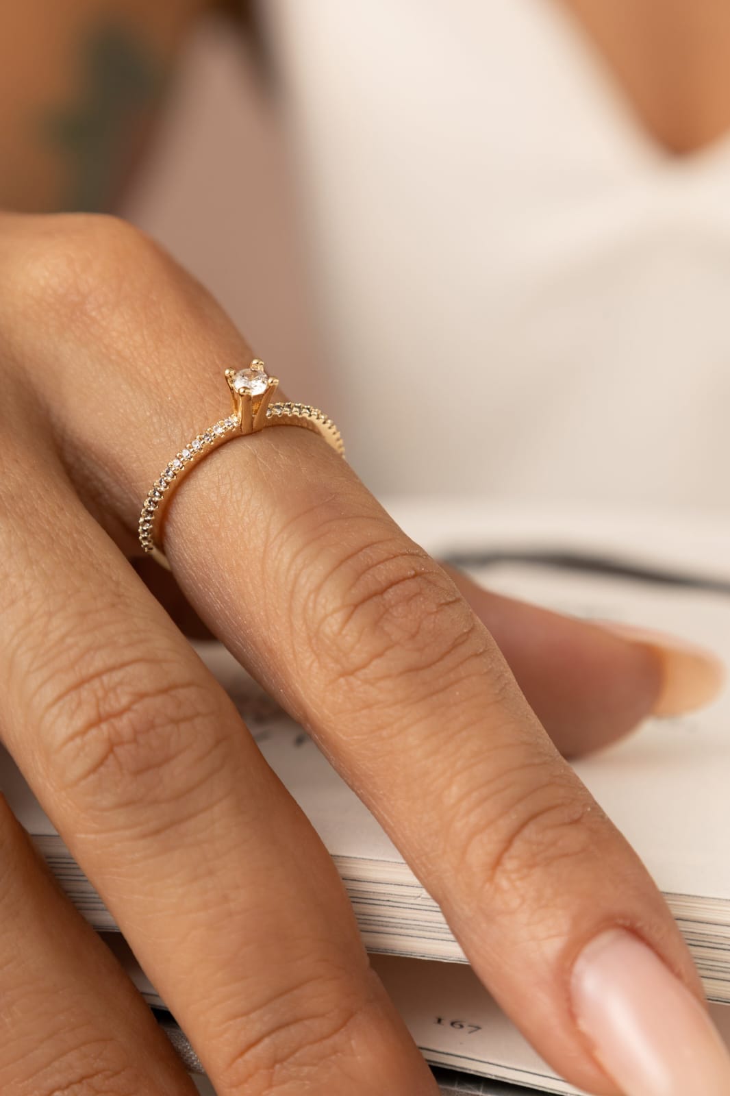 Anel Banhado à Ouro 18k Solitário Delicado Zircônia Branca