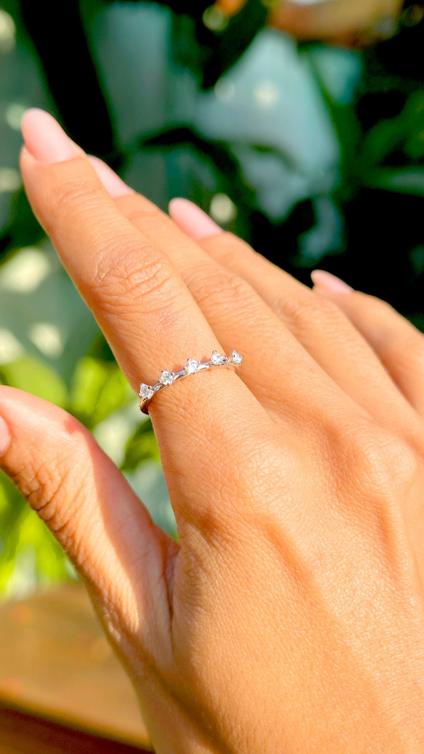 Anel Meia Aliança Banhado à Ródio Branco com Pedra de Zircônia