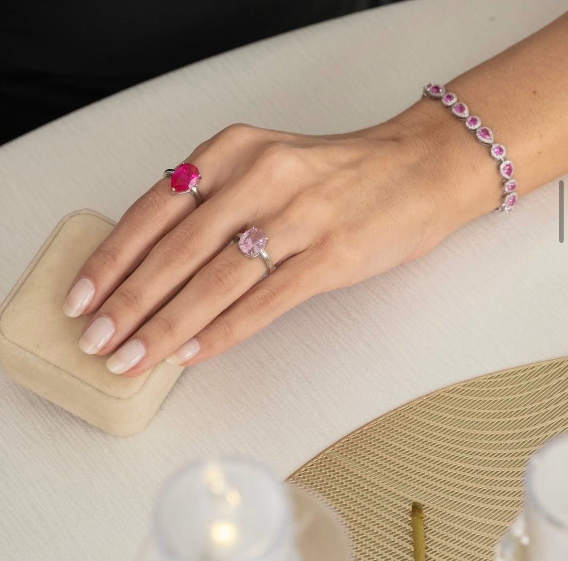 Trabalhamos com prata 925, zircônias premium, madrepérolas, pérolas shell, moissanite certificado, cristais lapidados com cravação firme, além de resinas e pedras naturais.