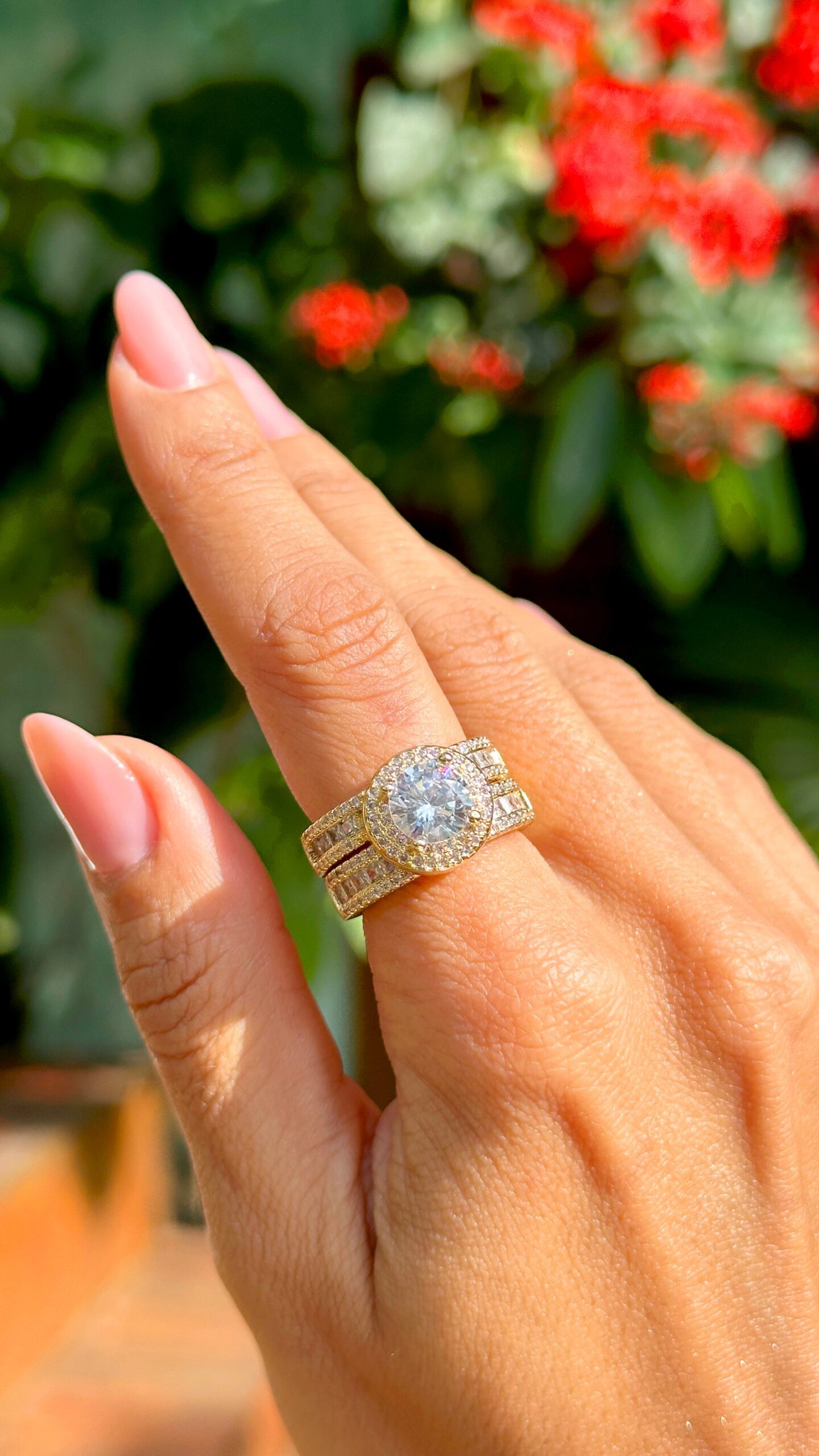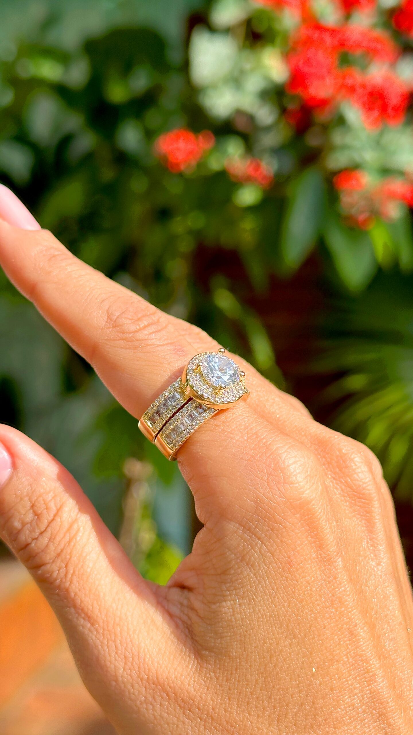 Anel Solitário Banhado à Ouro 18k com Pedra de Zircônia e Aparador Cravejado