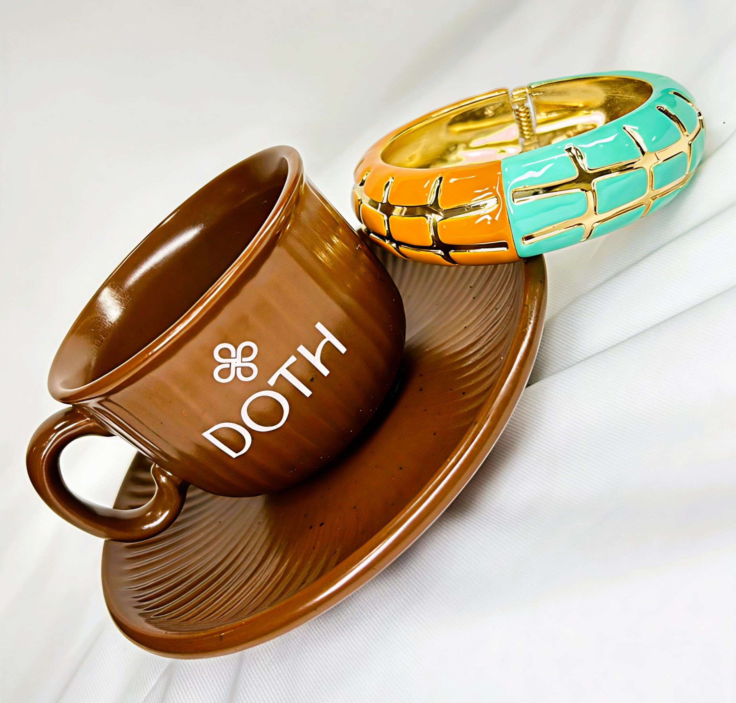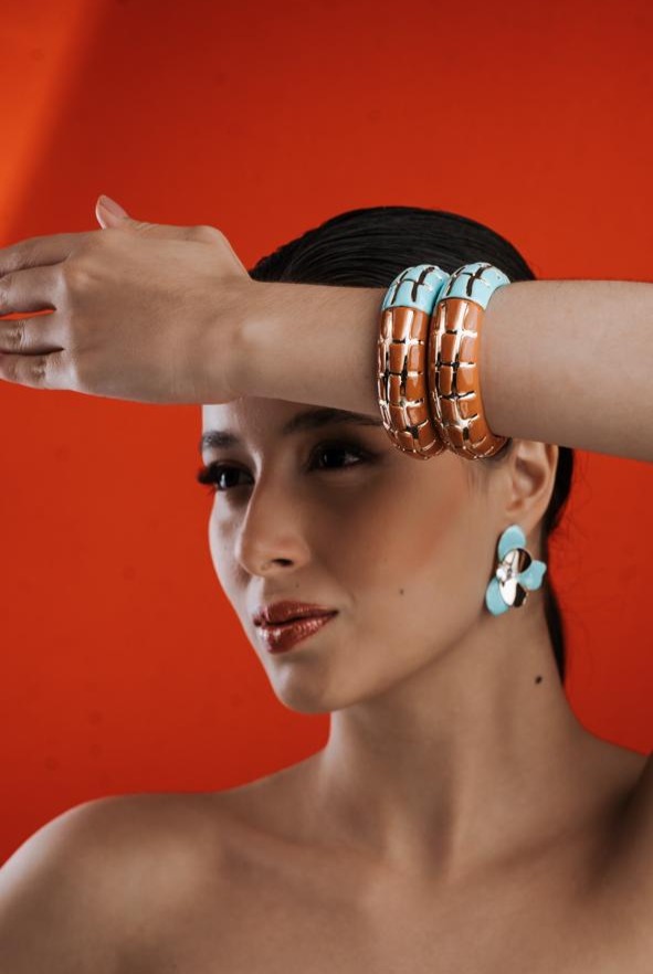 Bracelete Esmaltado Largos Verde/Caramelo Banhado à Ouro 18k Luxuoso