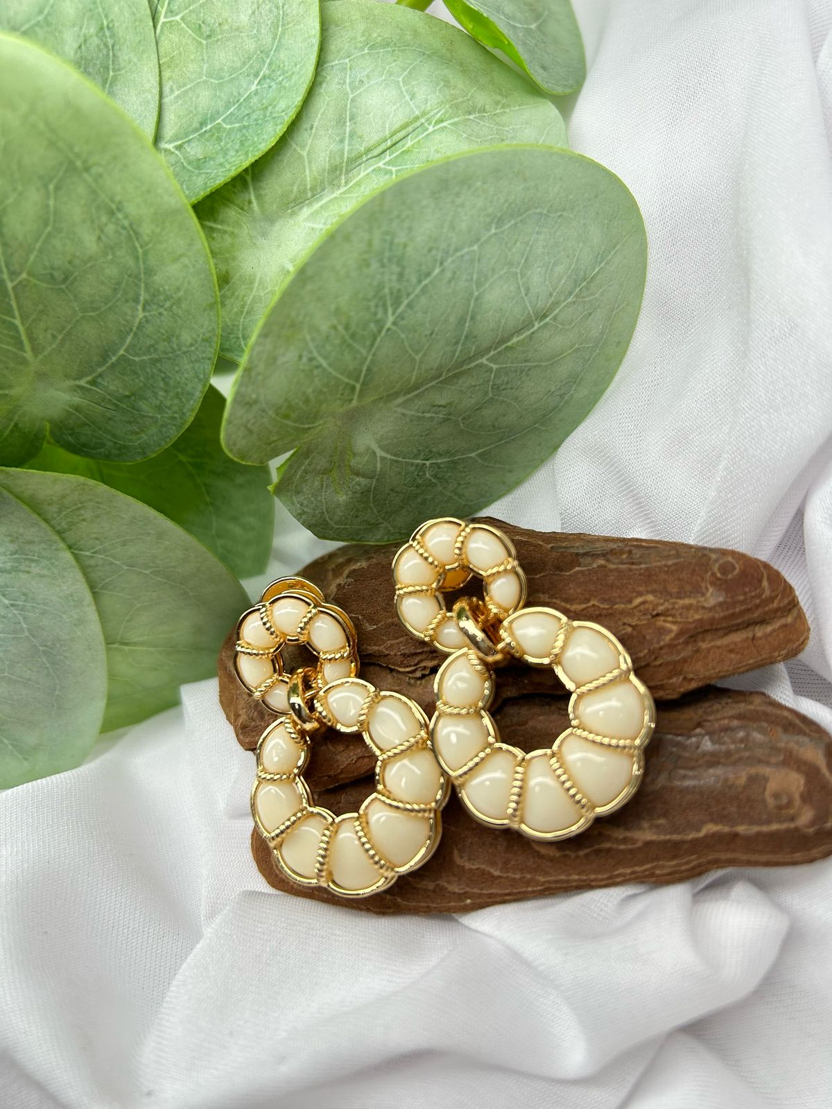 Brinco banhado à Ouro 18k com Resina Off White e Acabamento Polido