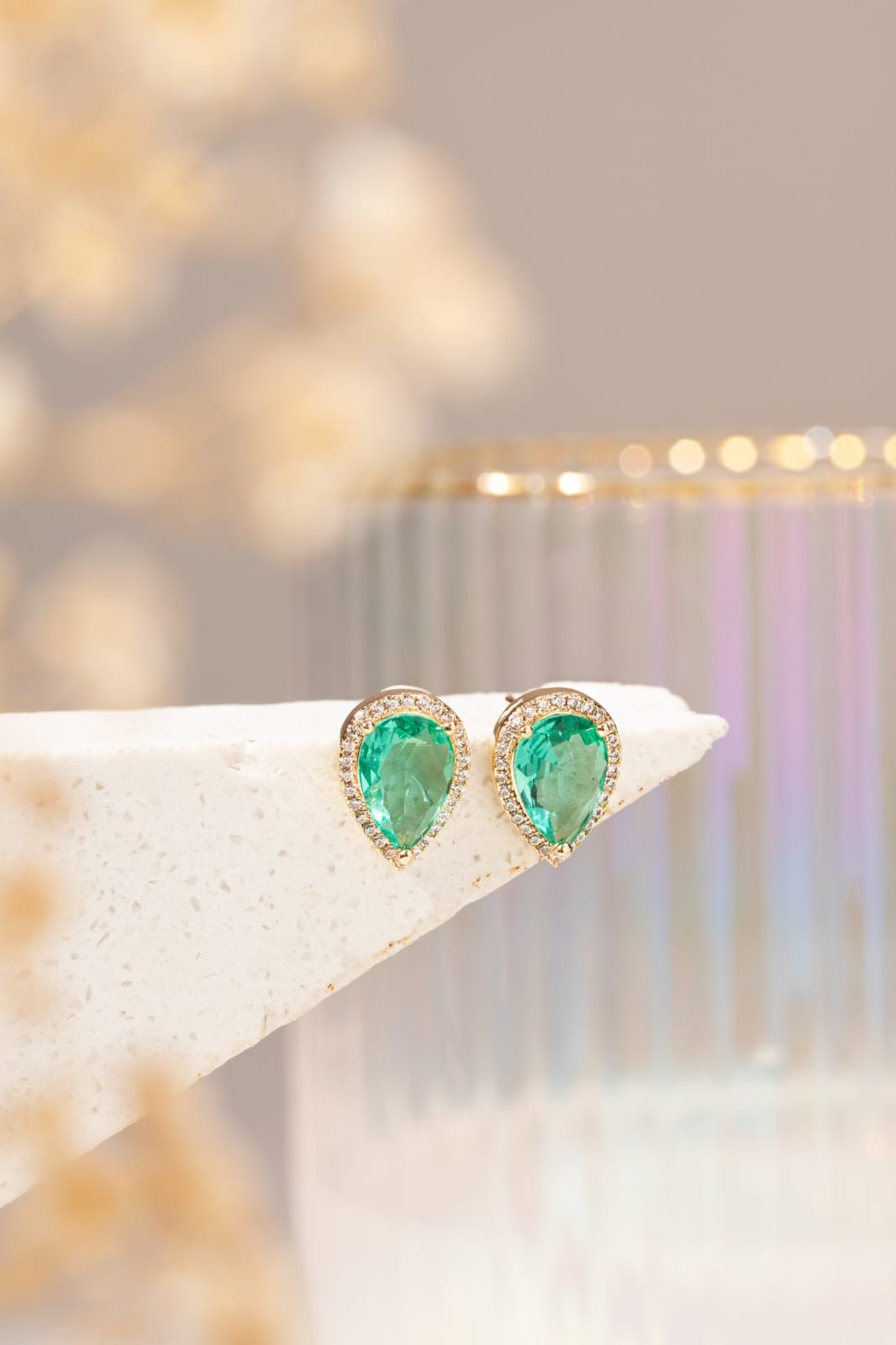 Brinco Banhado à Ouro 18K Gota Cristal Paraíba Verde Cravejado com Zircônia Branca