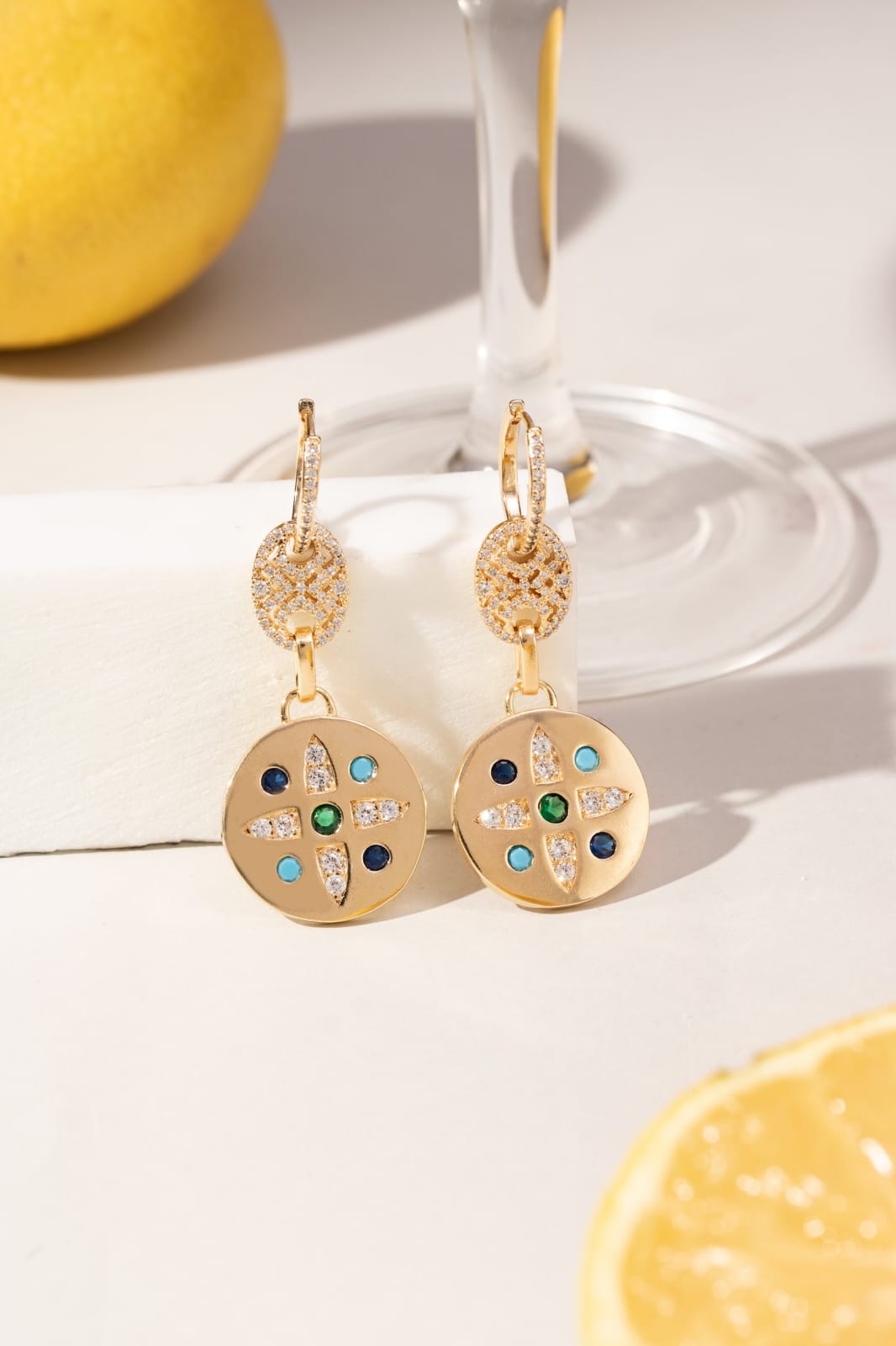 Brinco Banhado à Ouro 18K Nano Mandala de Estrela com Pedras Coloridas de Cristal