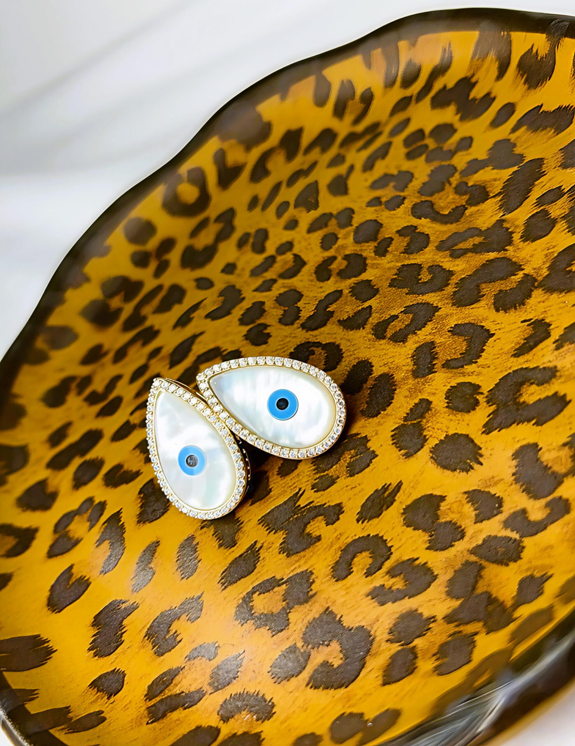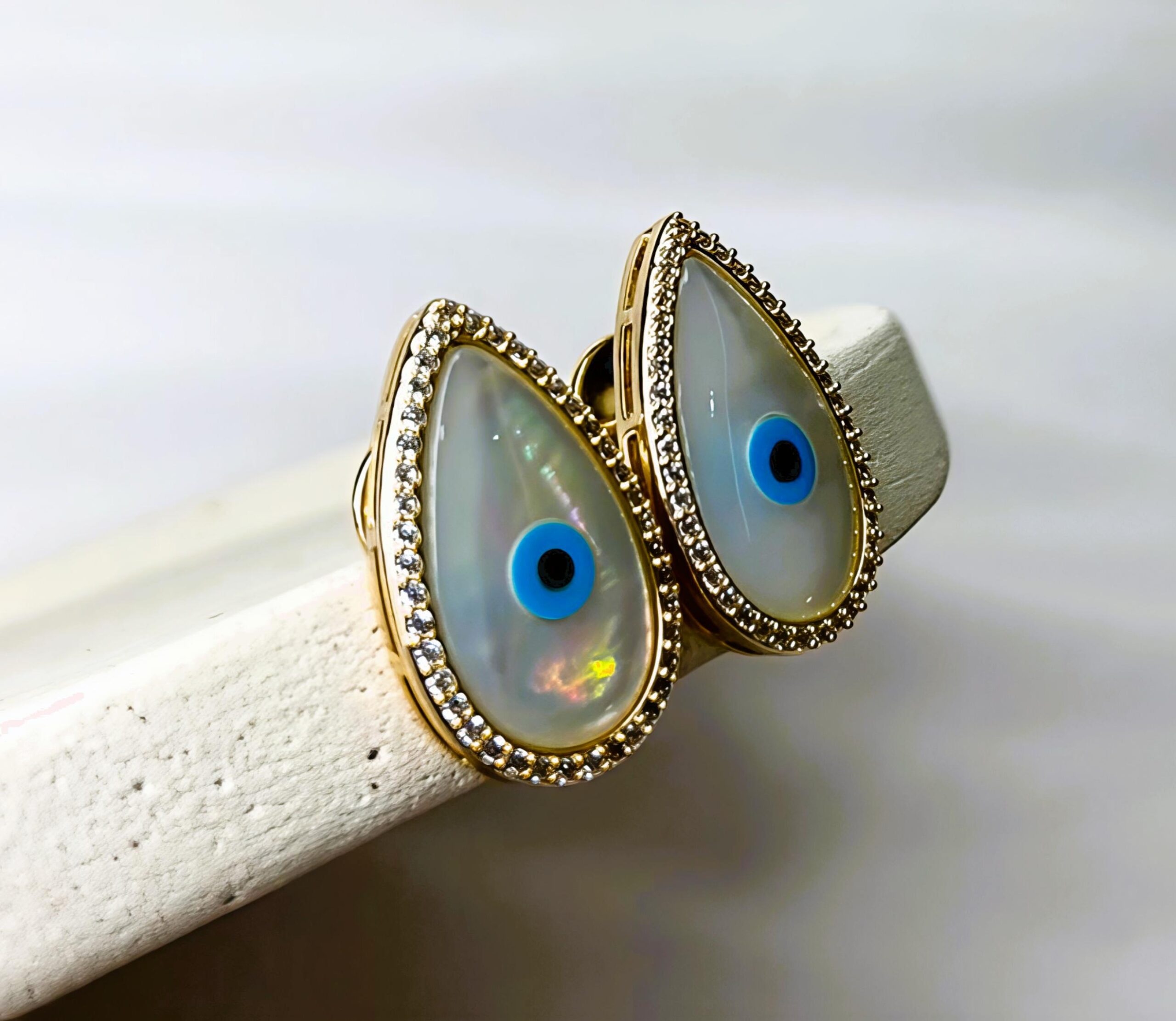 Brinco Banhado á Ouro 18k Olho Grego com Madrepérola Cravejado com Zircônia Branca