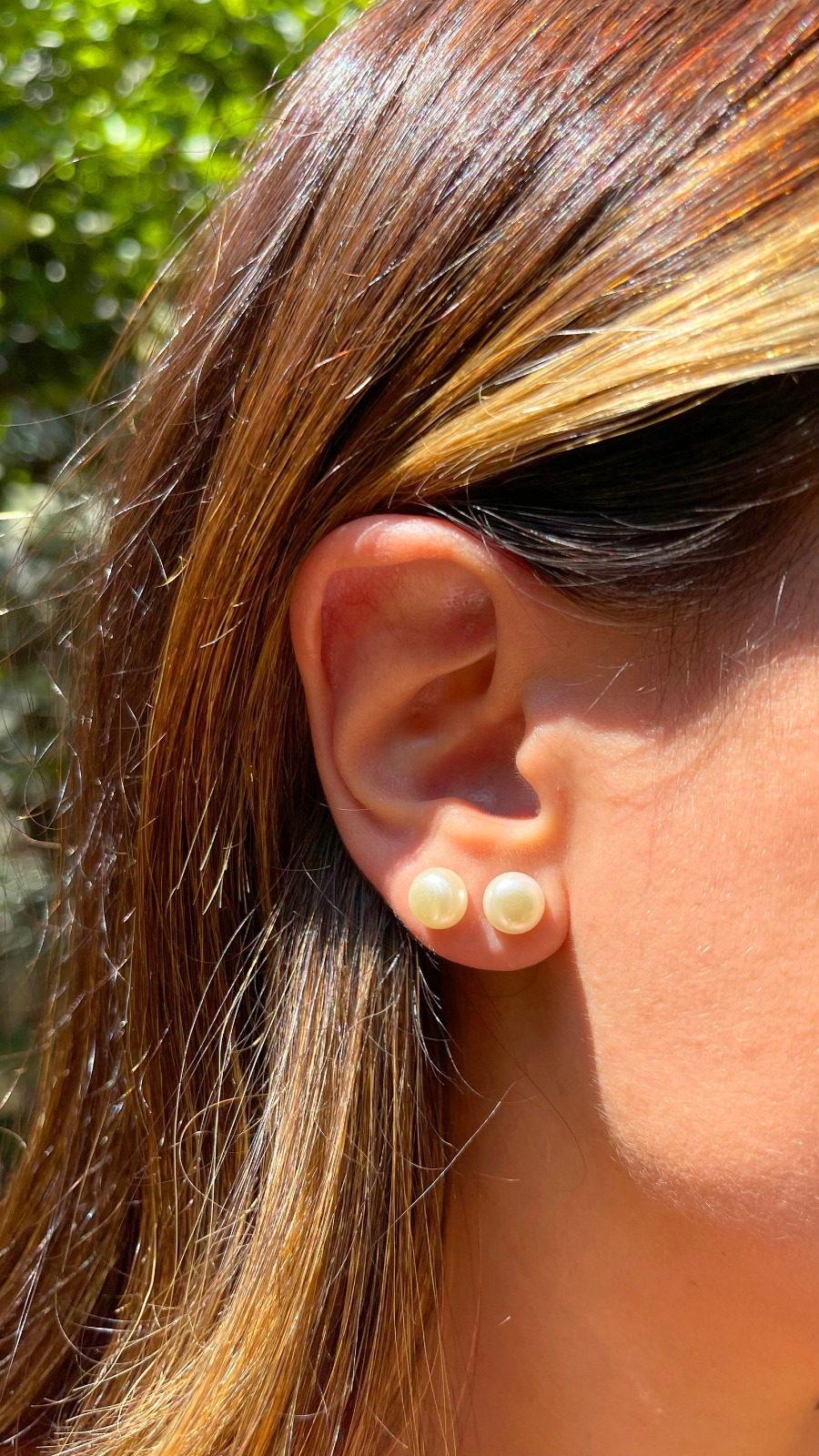 Brinco Banhado à Ouro 18K Perola Bola Achatada 8mm