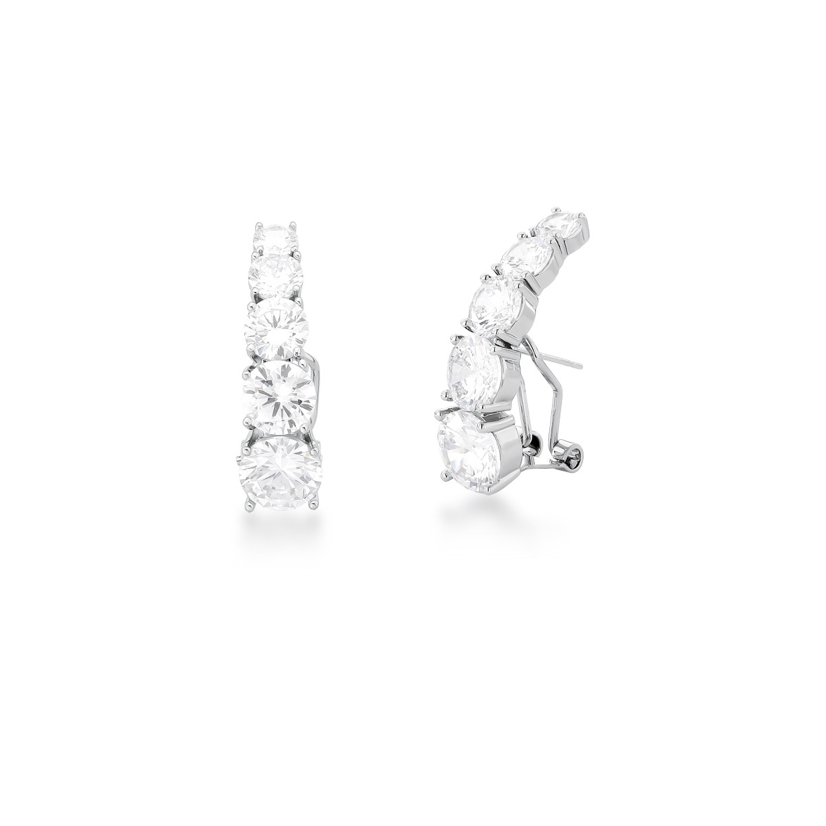 Brinco Banhado à Ródio Ear Hook Cinco Pedras Redondas de Zircônia Fecho Omega