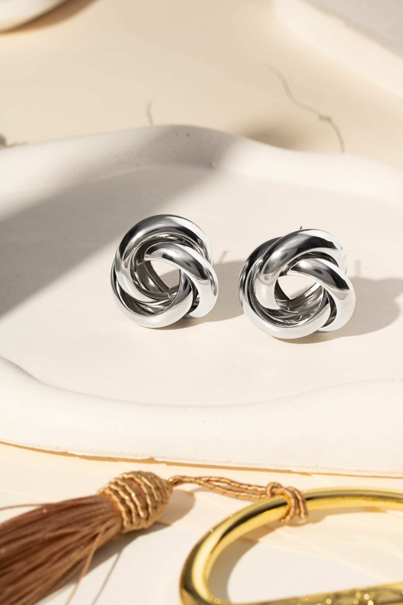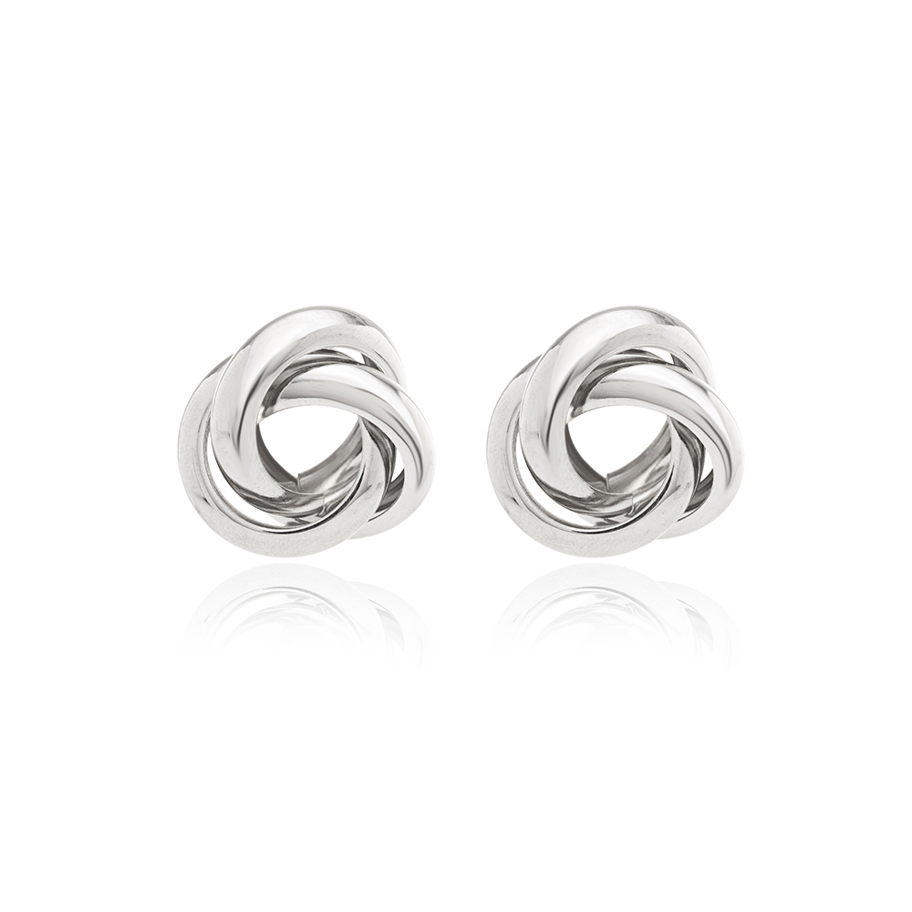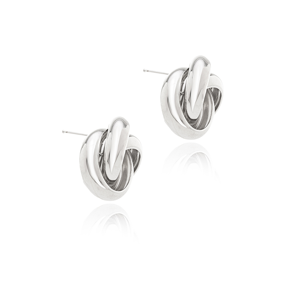 Brinco Entrelaçado Liso Banhado à Ródio Branco