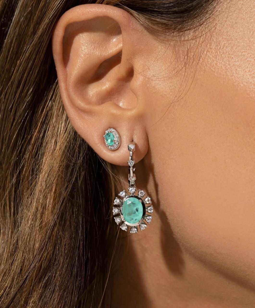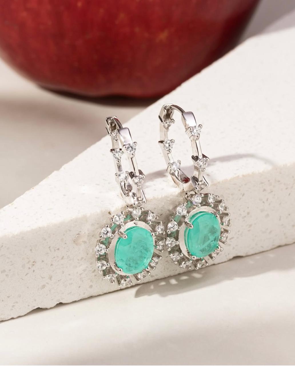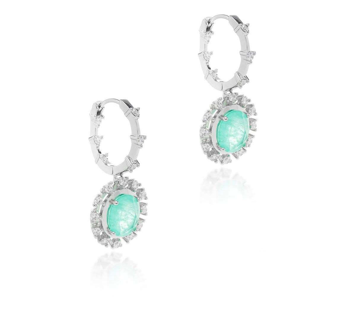 Brinco Fusion Banhado è Ródio Branco com Zircônia e Pedra Turmalina
