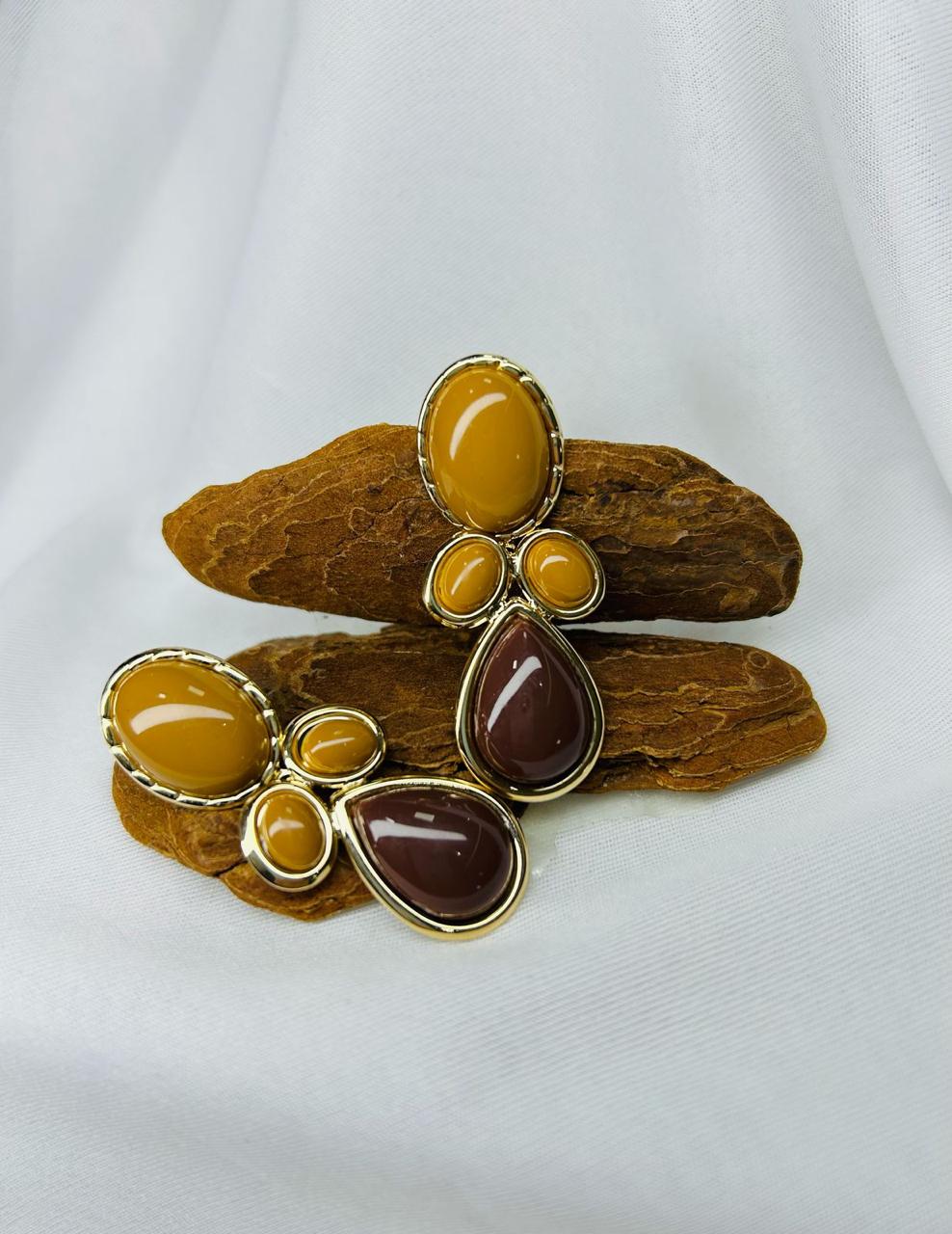 Brinco Oval Banhado à Ouro 18k com Pedras Resinadas Sofisticada