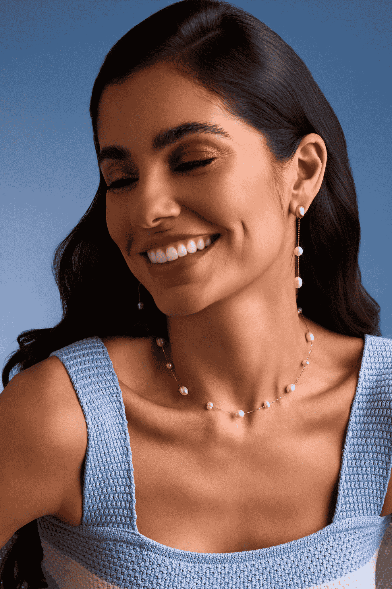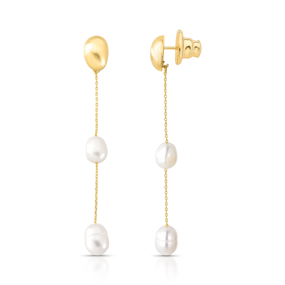 Brinco Pendulo Banhado à Ouro 18K com 2 Perolas Branca