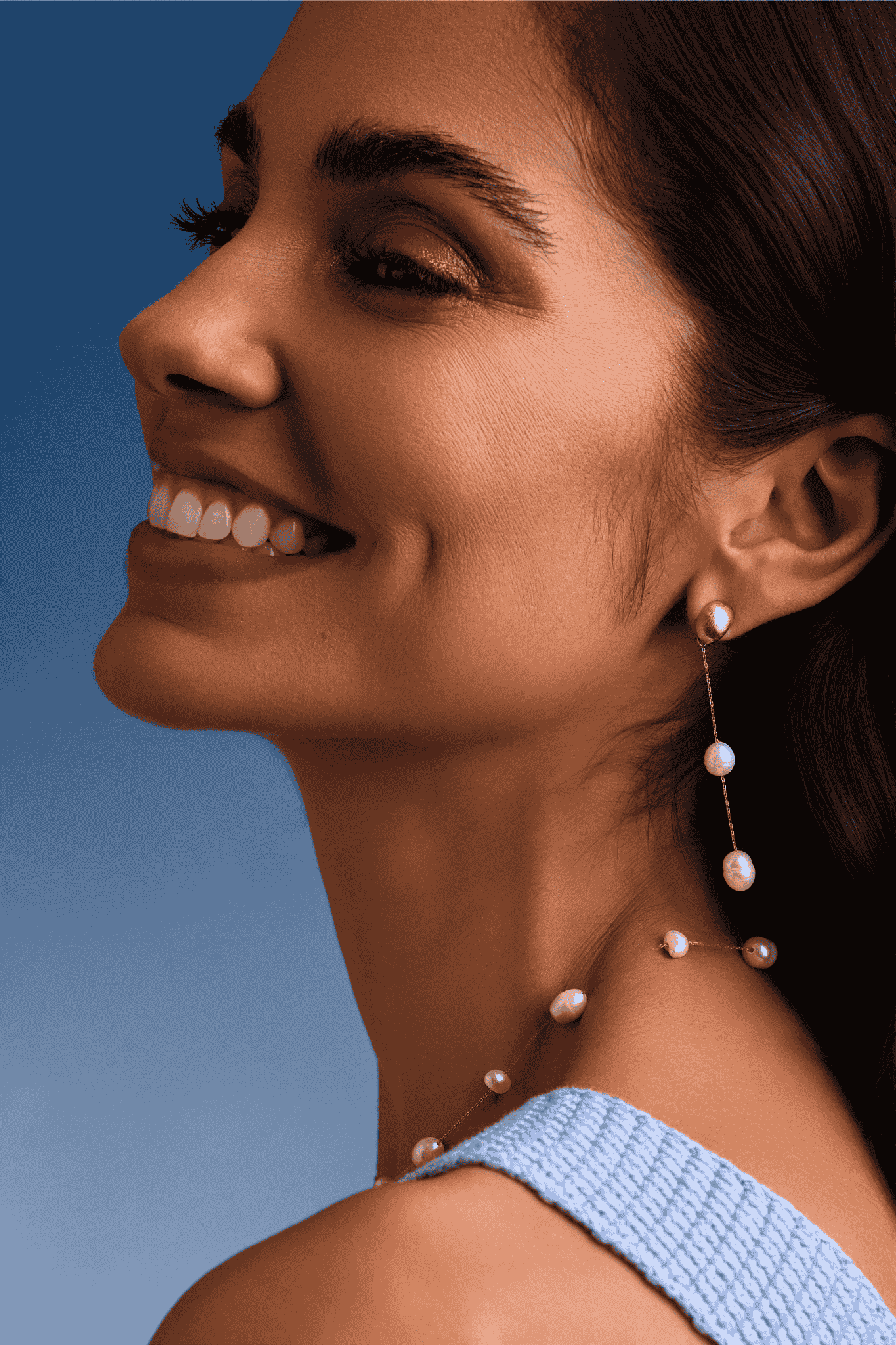 Composto em pérola natural de água doce na cor branca Lapidação barroca | Cravação fio