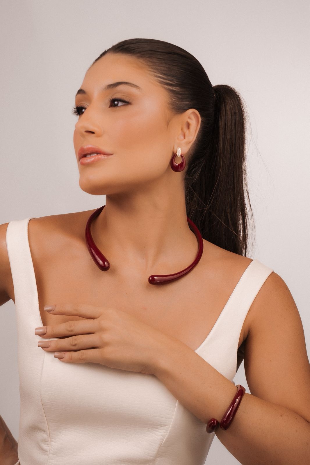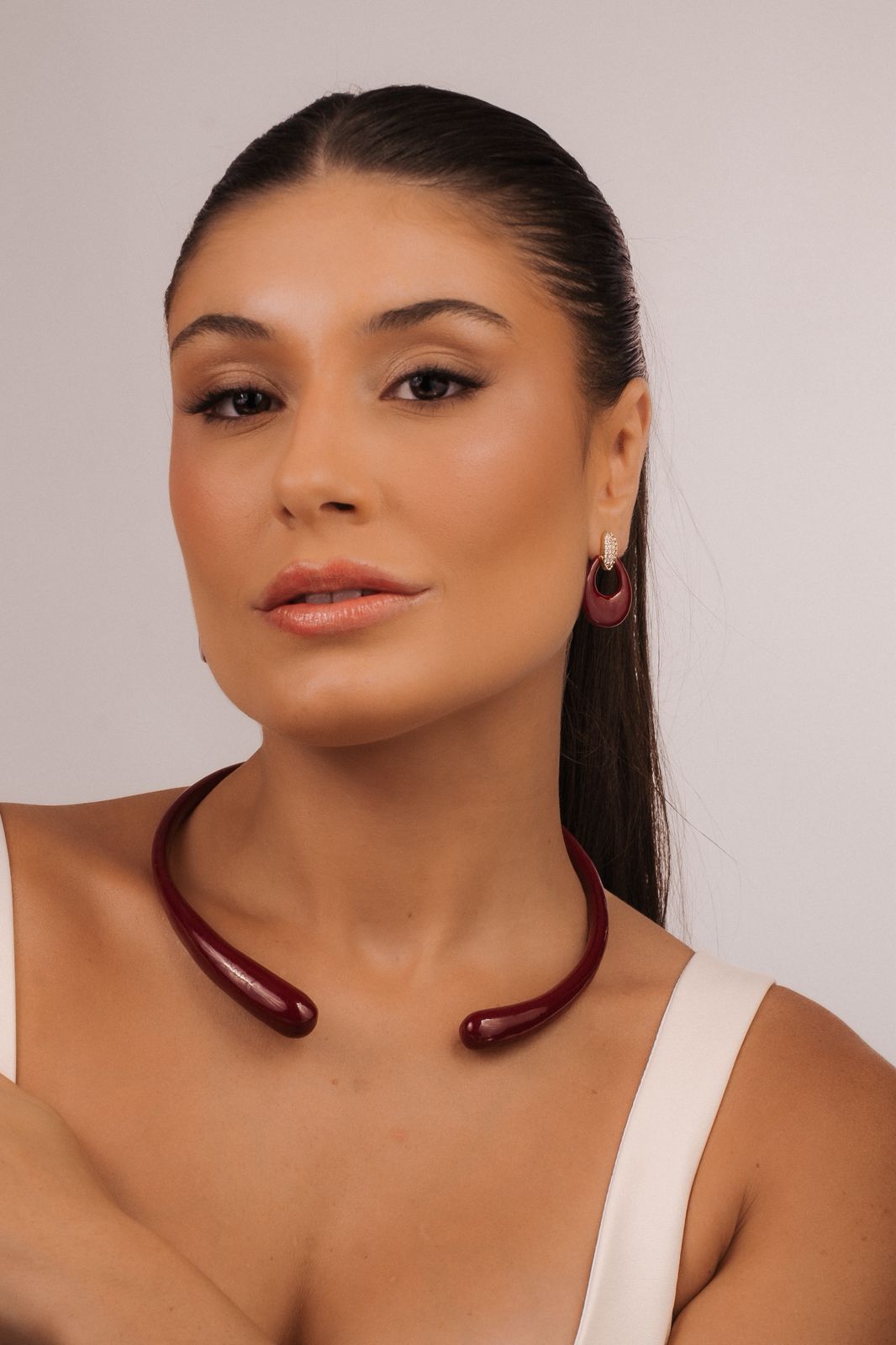 Colar Aro Duas Gotas Esmaltado Bordô