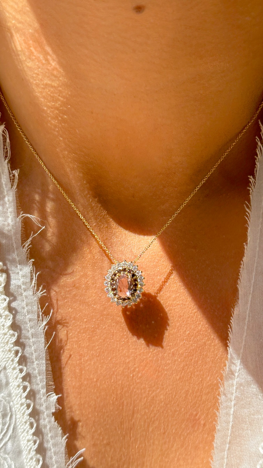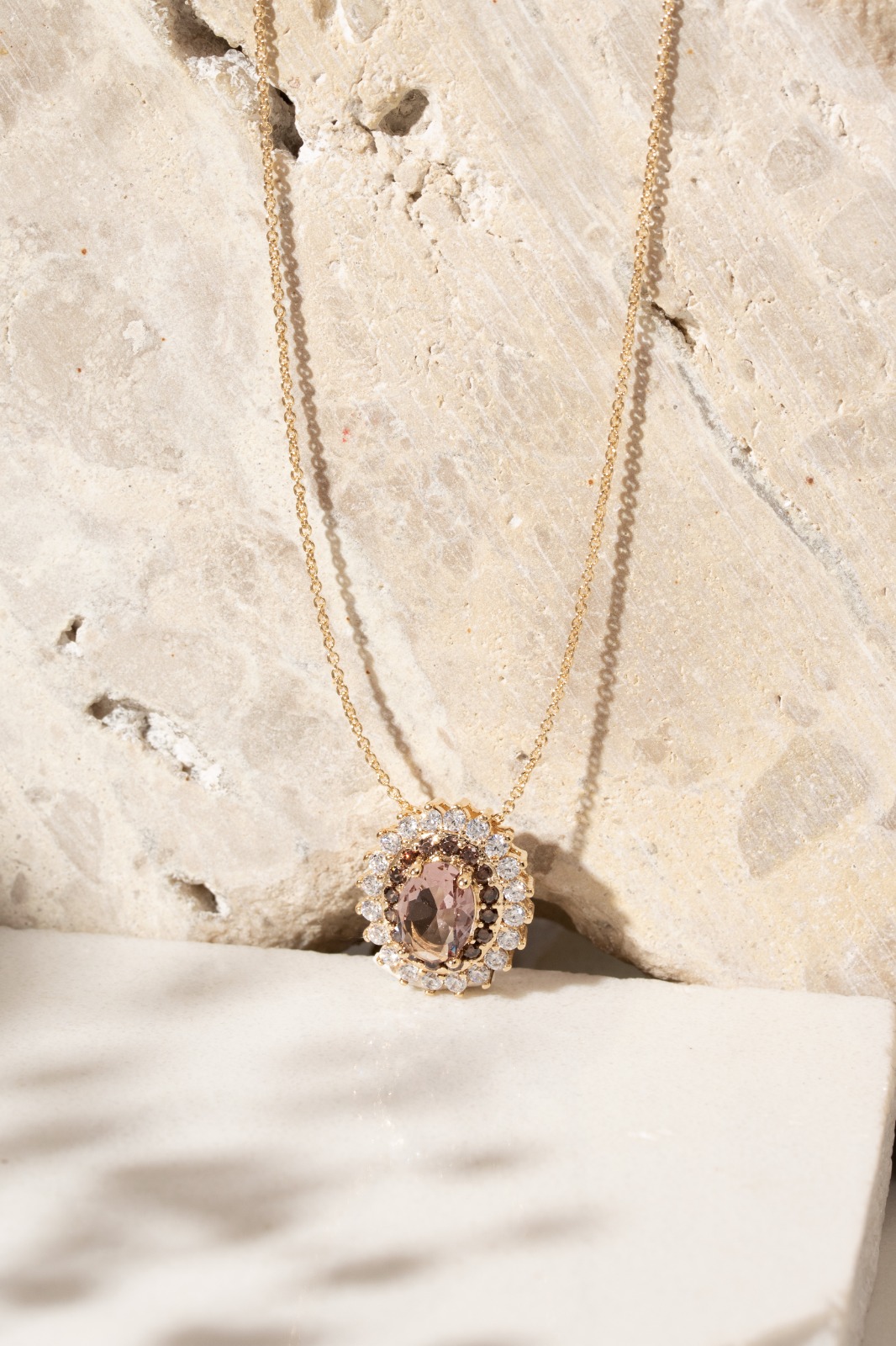 Colar Banhado à Ouro 18K Oval Rodolito Zircônia Chocolate Cravejado com Pedras Branca/Vermelha