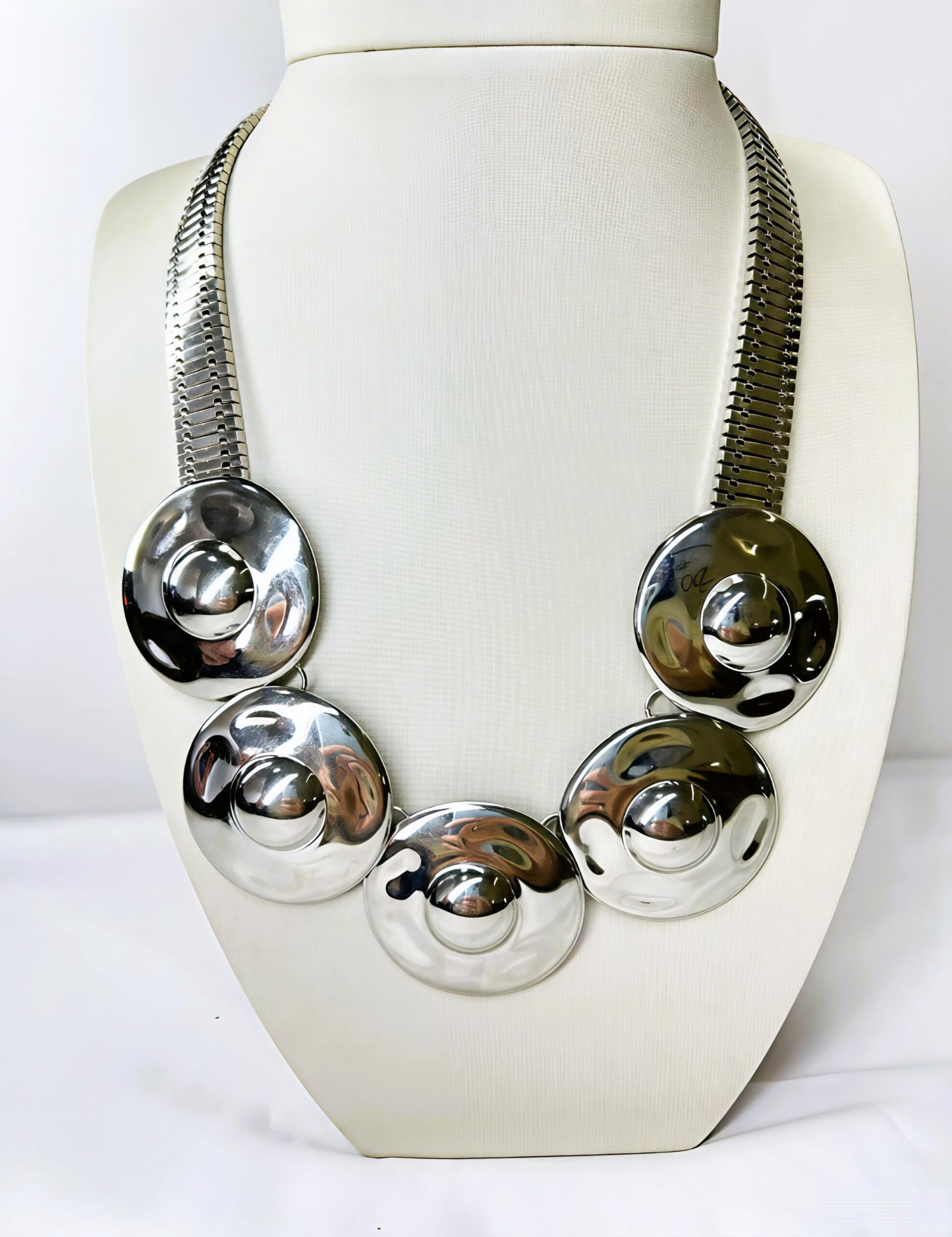 Colar Placas Redondas Banhado à Ródio Branco Extravagante