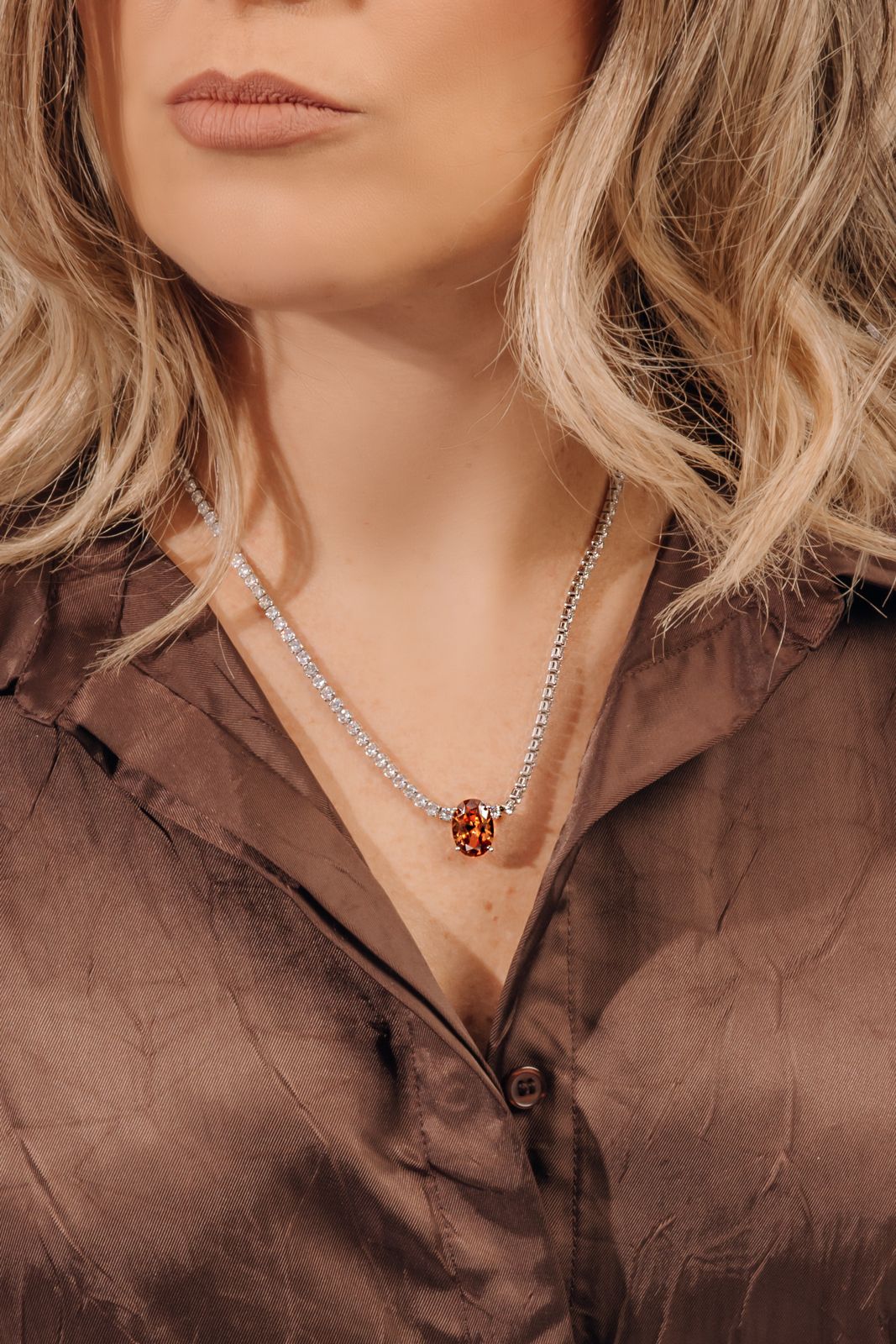 Colar Riviera Oval Maleável Mocha Mousse Ródio Branco