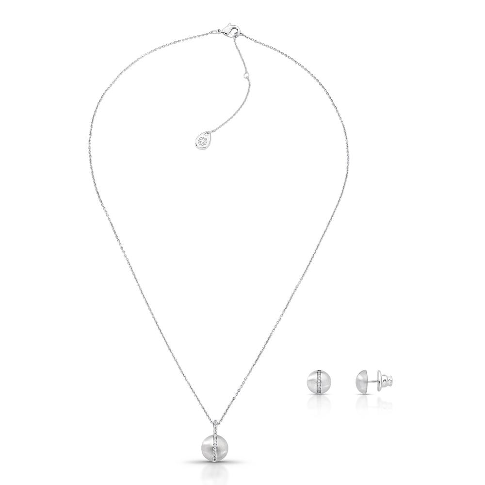 Conjunto Colar e Brincos Banhado à Ródio Branco Cravejado com Zircônia