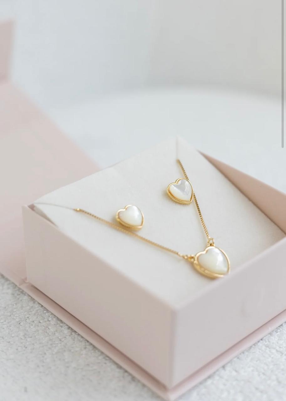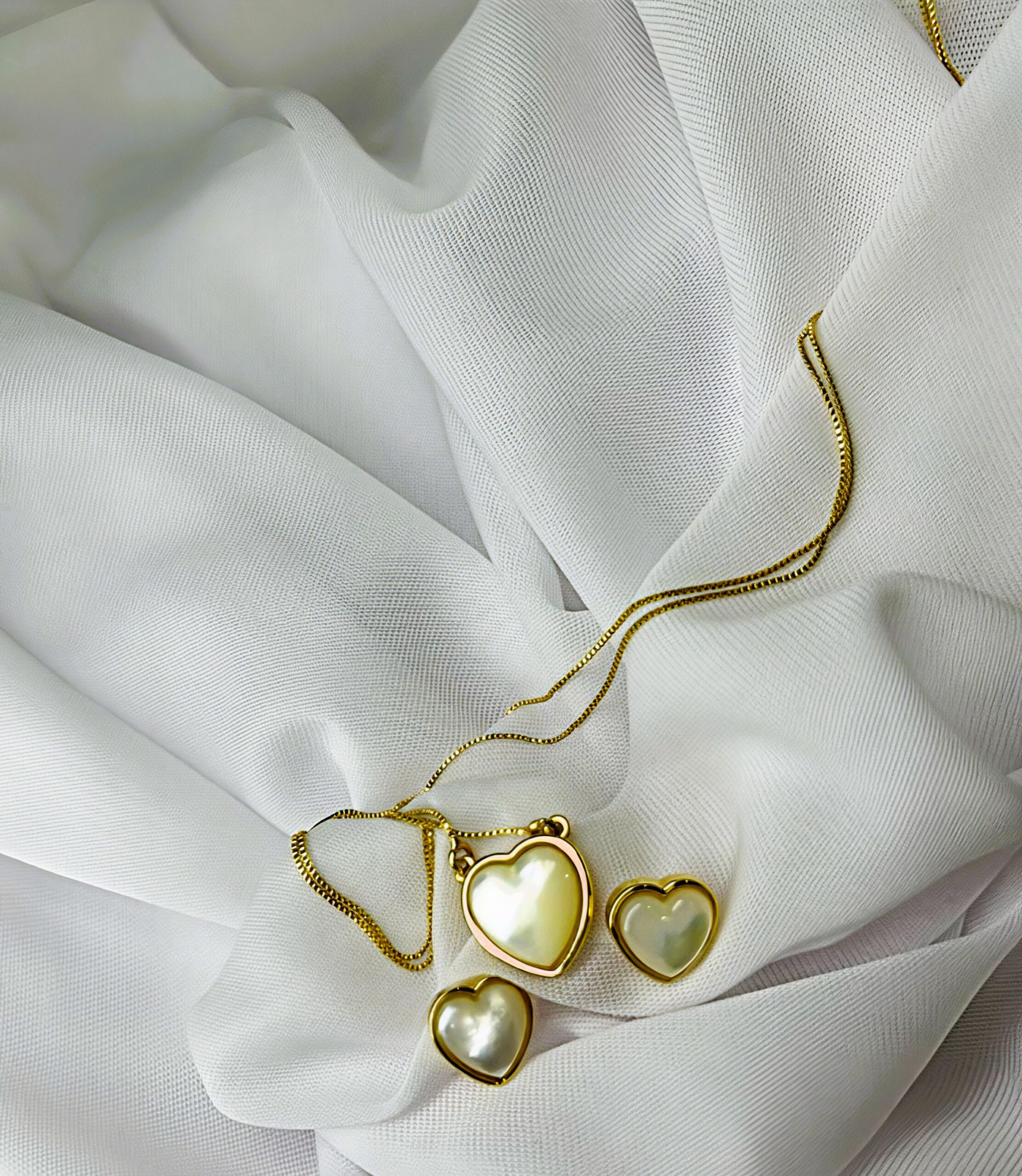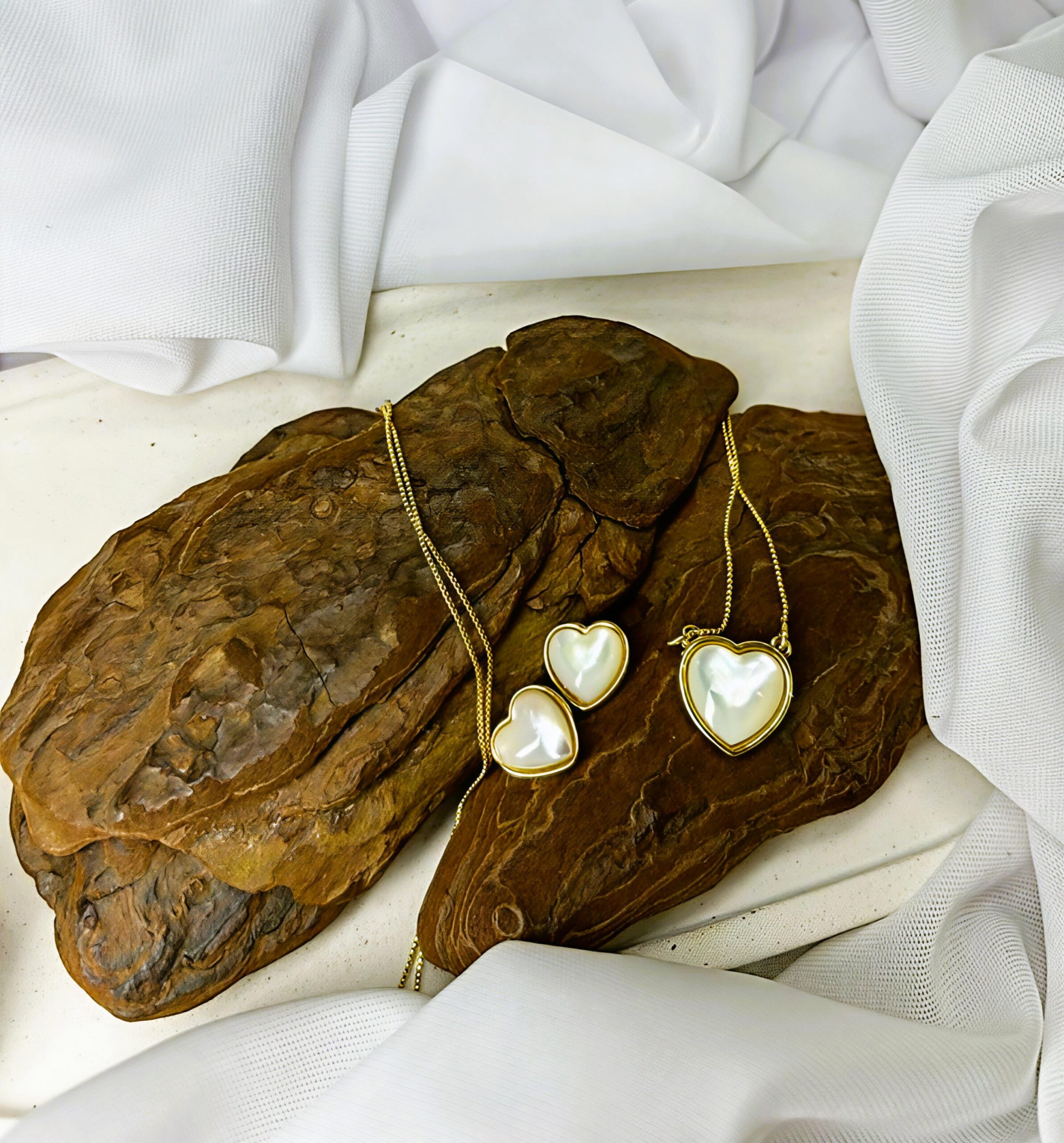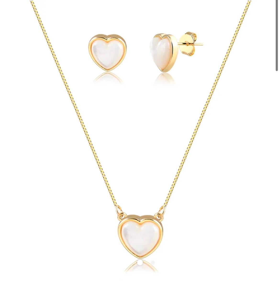 Conjunto Coração Madre Pérola Banhado à Ouro 18k Belíssimo