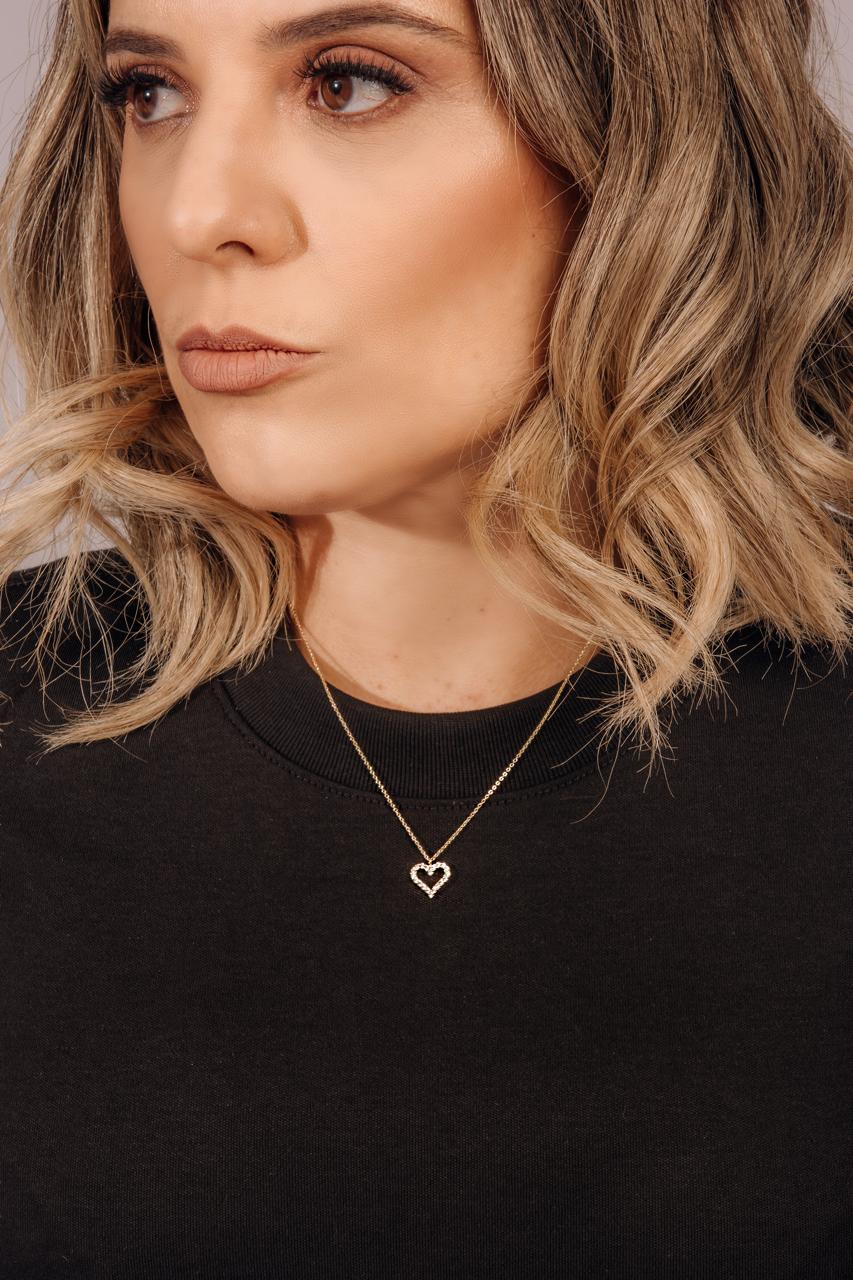 Corrente Banhado à Ouro 18k com Coração Cravejado com Zircônia