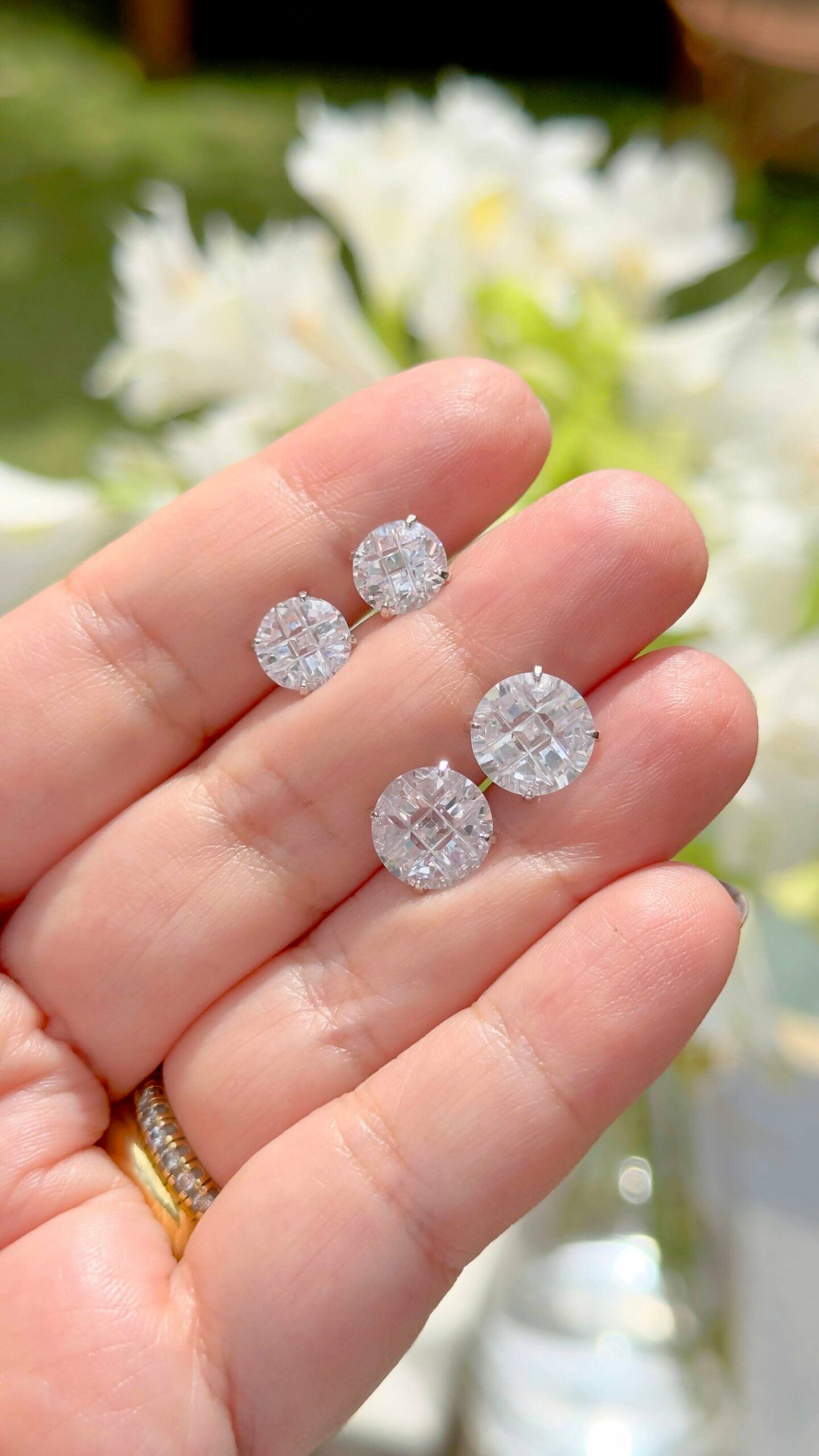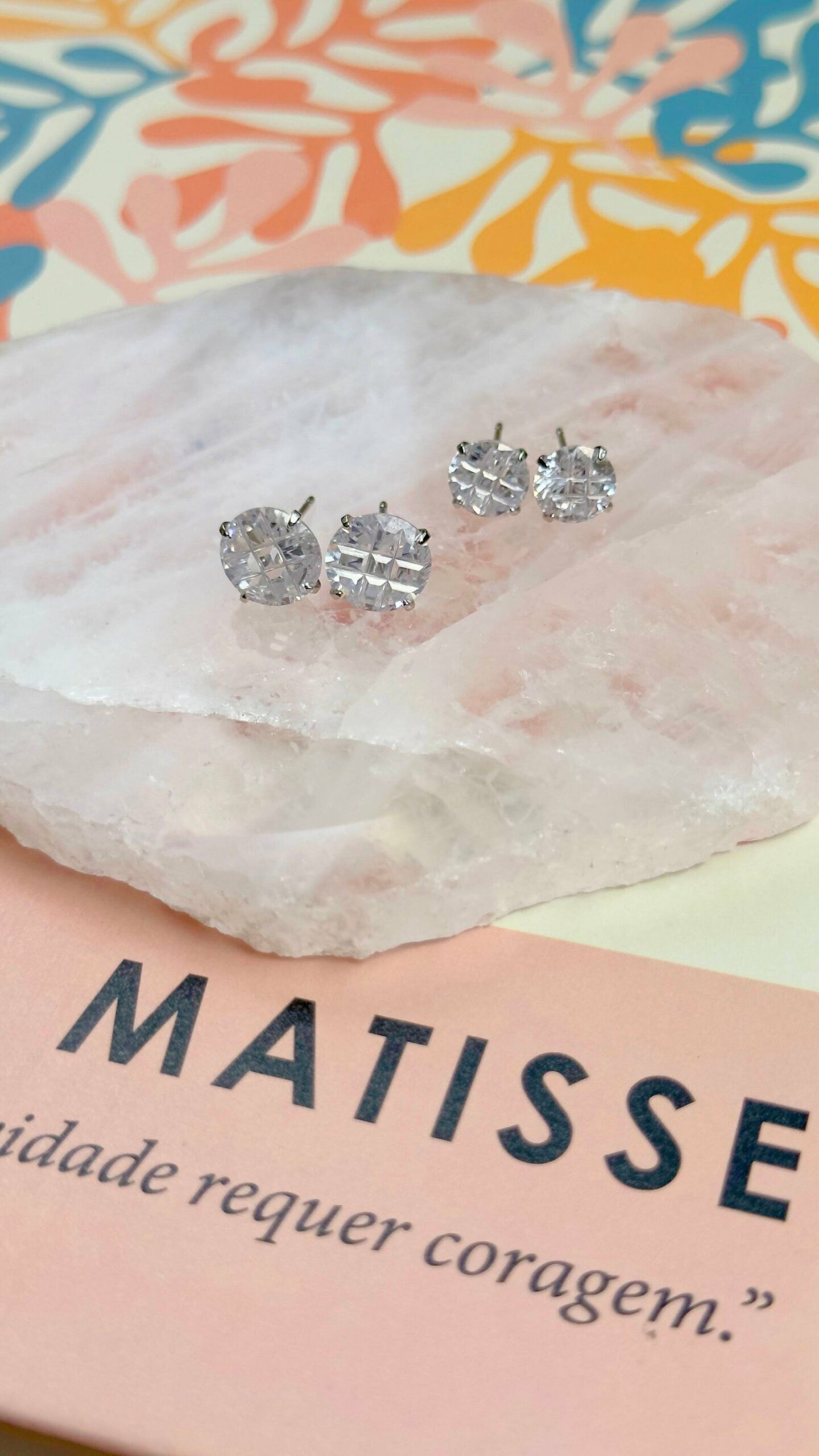 Duo de Brincos Ponto de Luz em Zircônia Branca Banhado em Ródio Branco