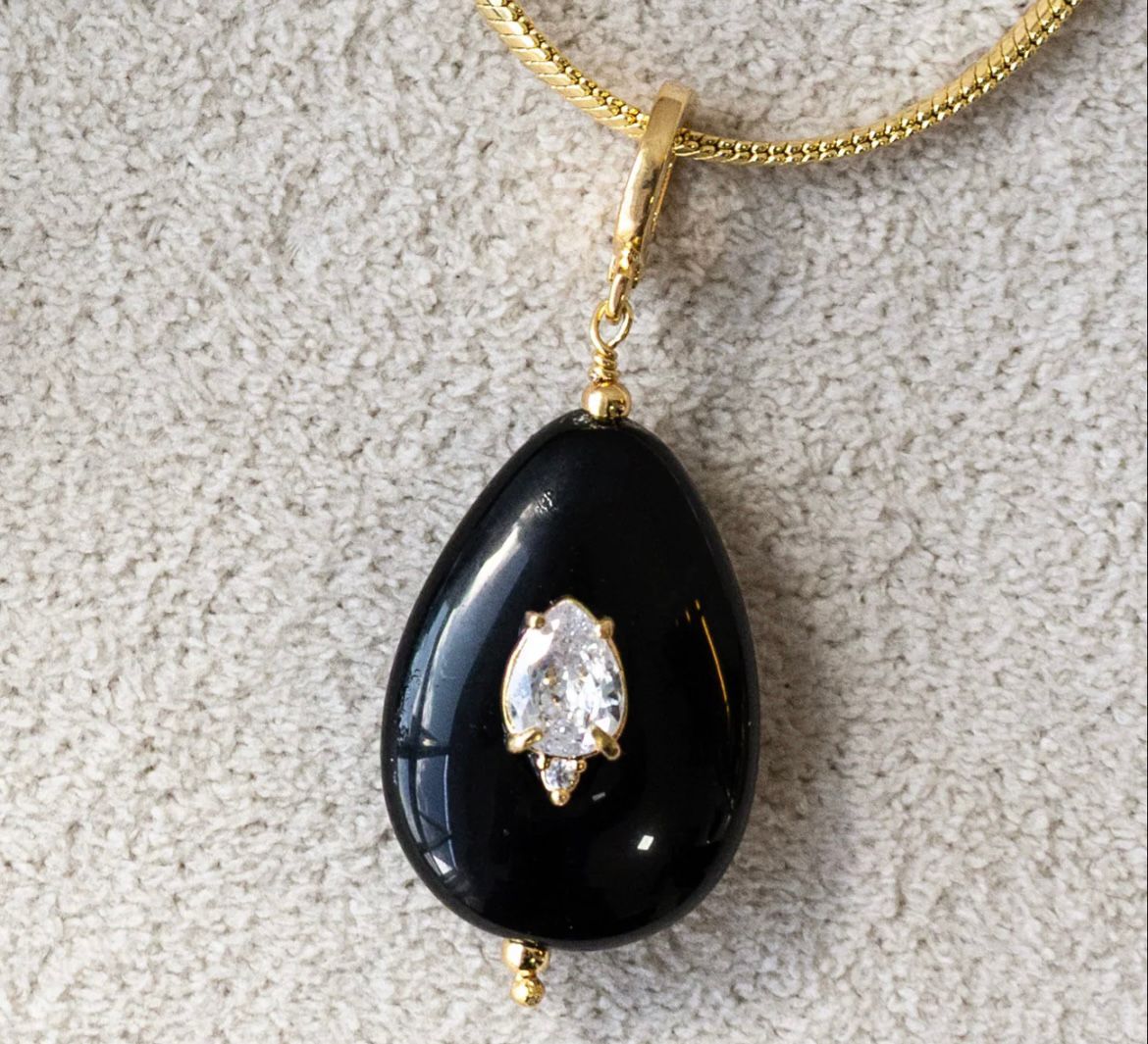 Pingente Banhado à Ouro 18K com Pedra Gota Ágata Preta