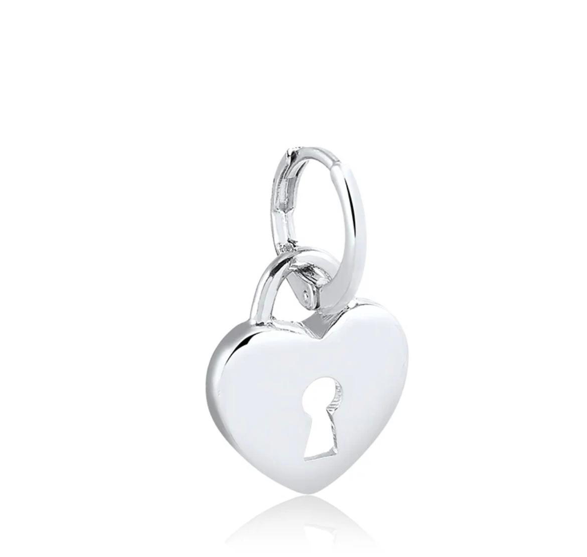 Pingente Banhado à Ródio Branco Coração Fechadura