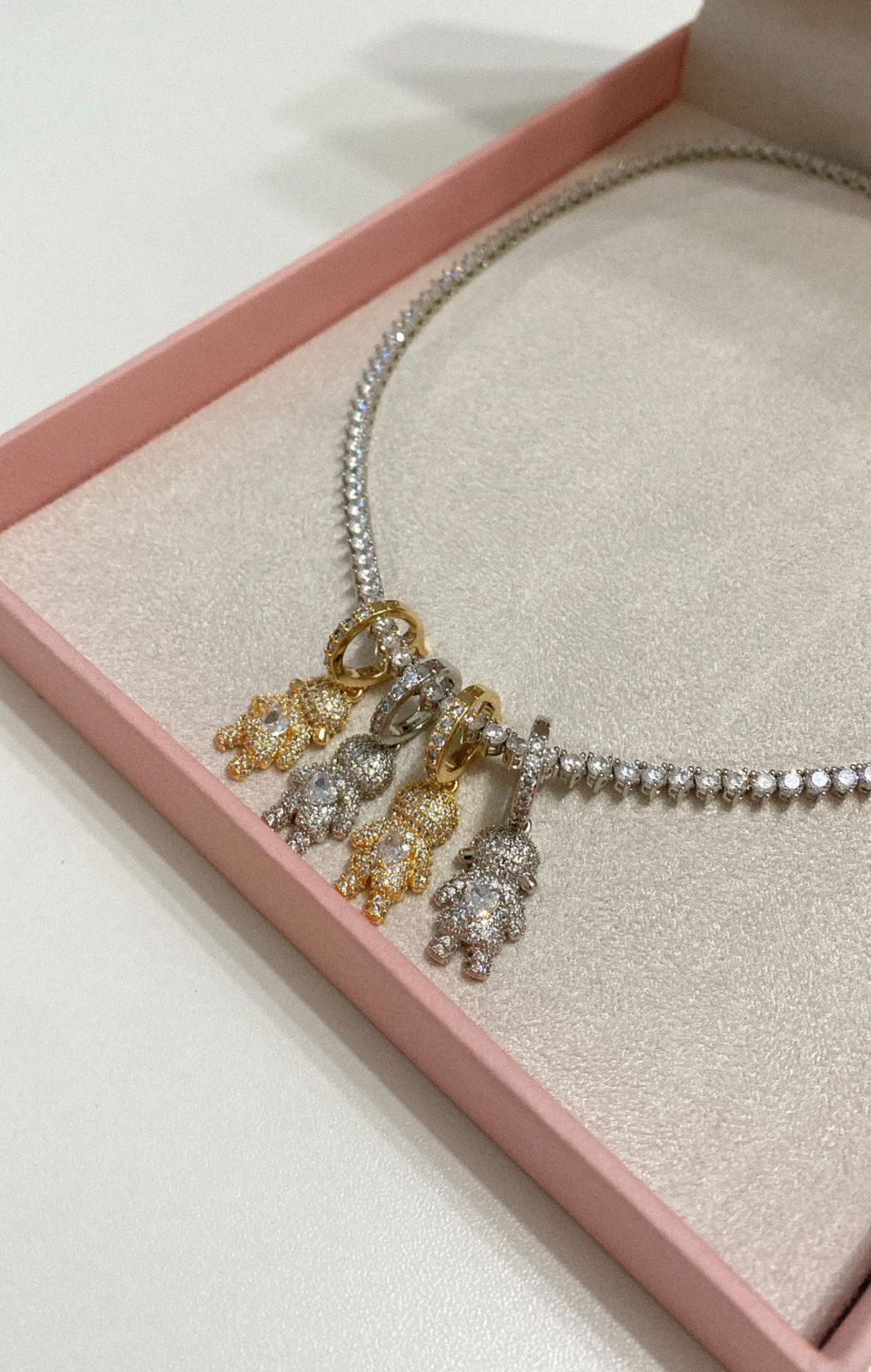 Pingente Cravejado Banhado à Ródio Branco Filhos Coração Cristal Menina