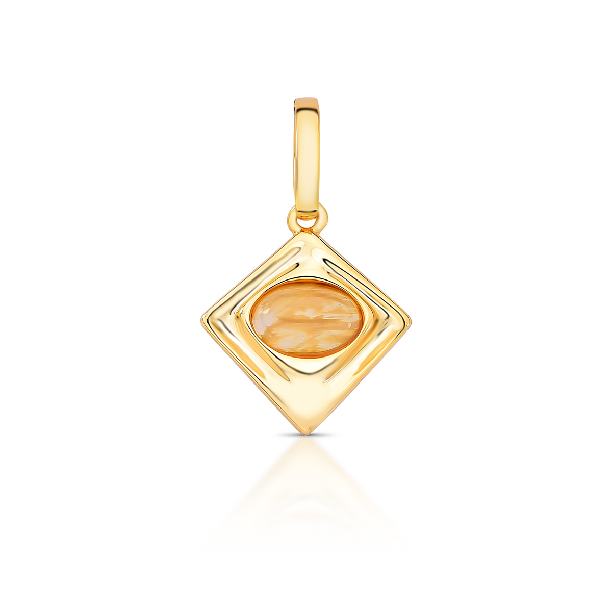 Pingente Fecho Banhado à Ouro 18K Pedra Losango Rutilo Bege
